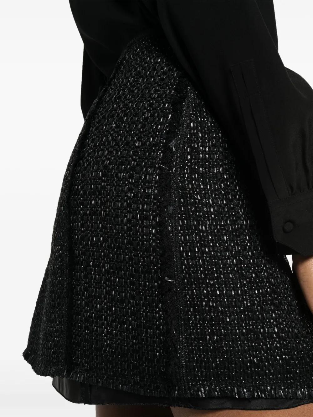 black cotton blend tweed lurex detailing frayed edge dart detailing high-waisted A-line layered hem