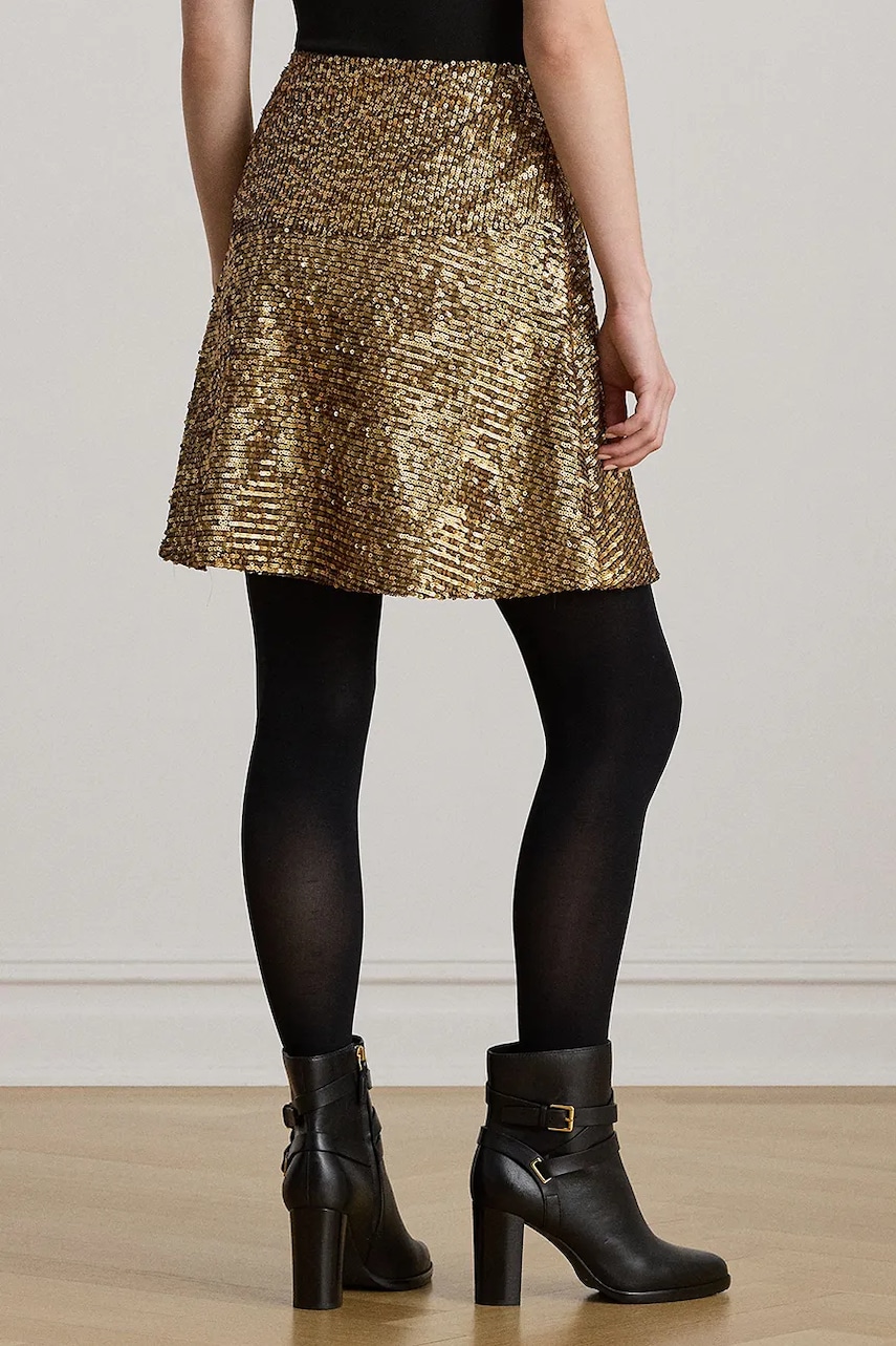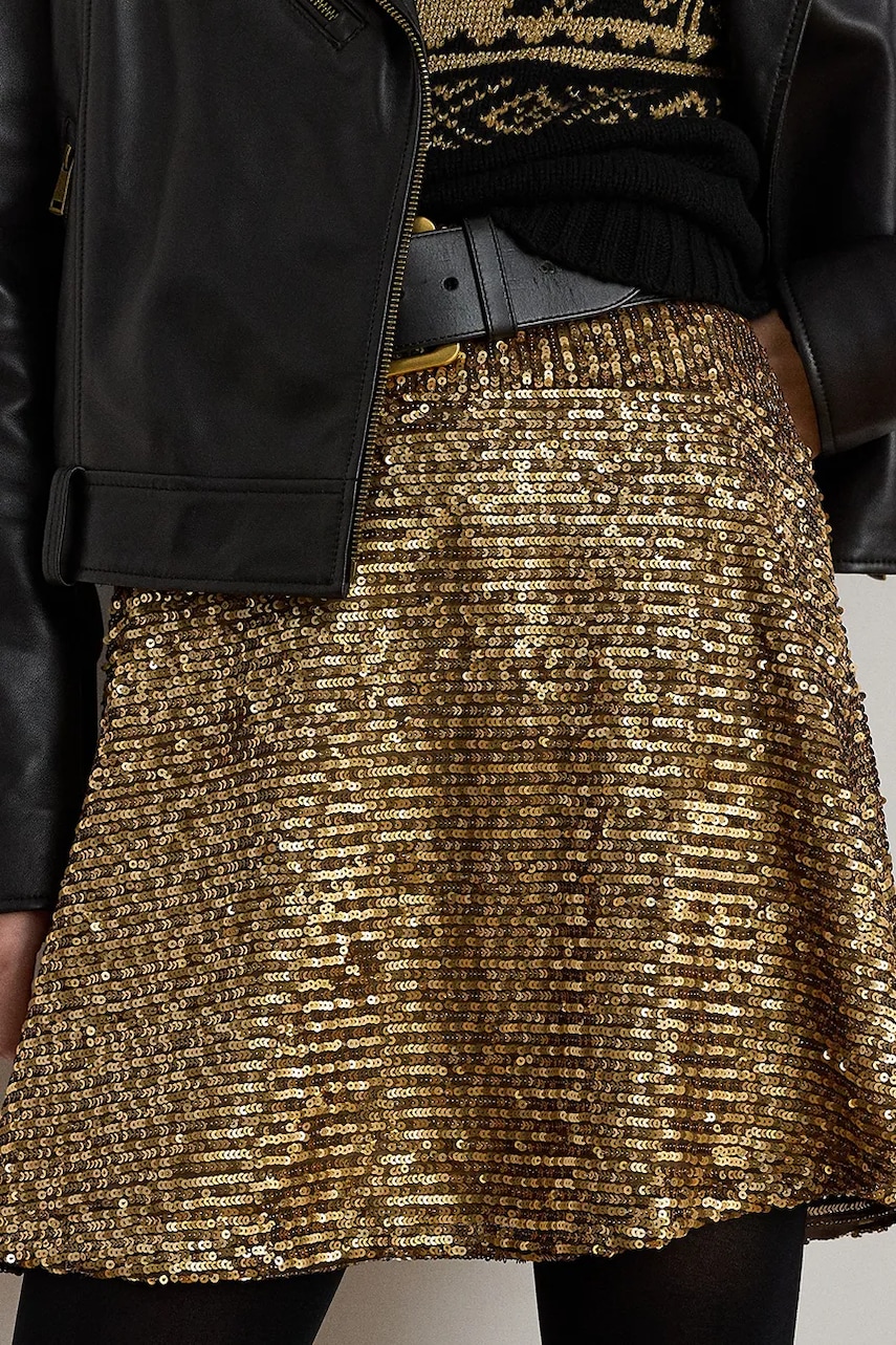Lauren Ralph Lauren spódnica kolor złoty mini rozkloszowana 200979905