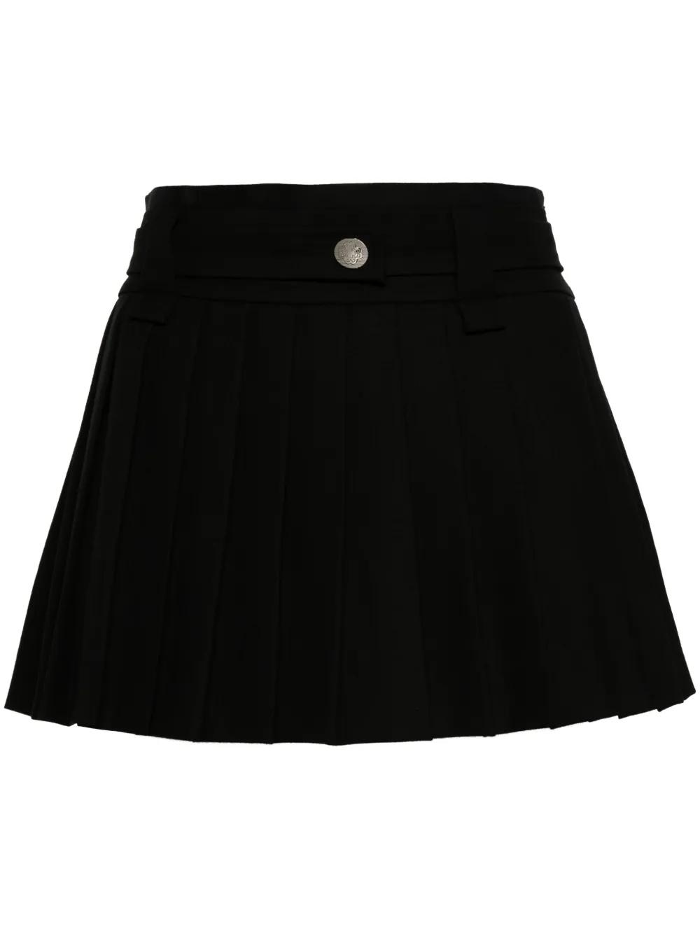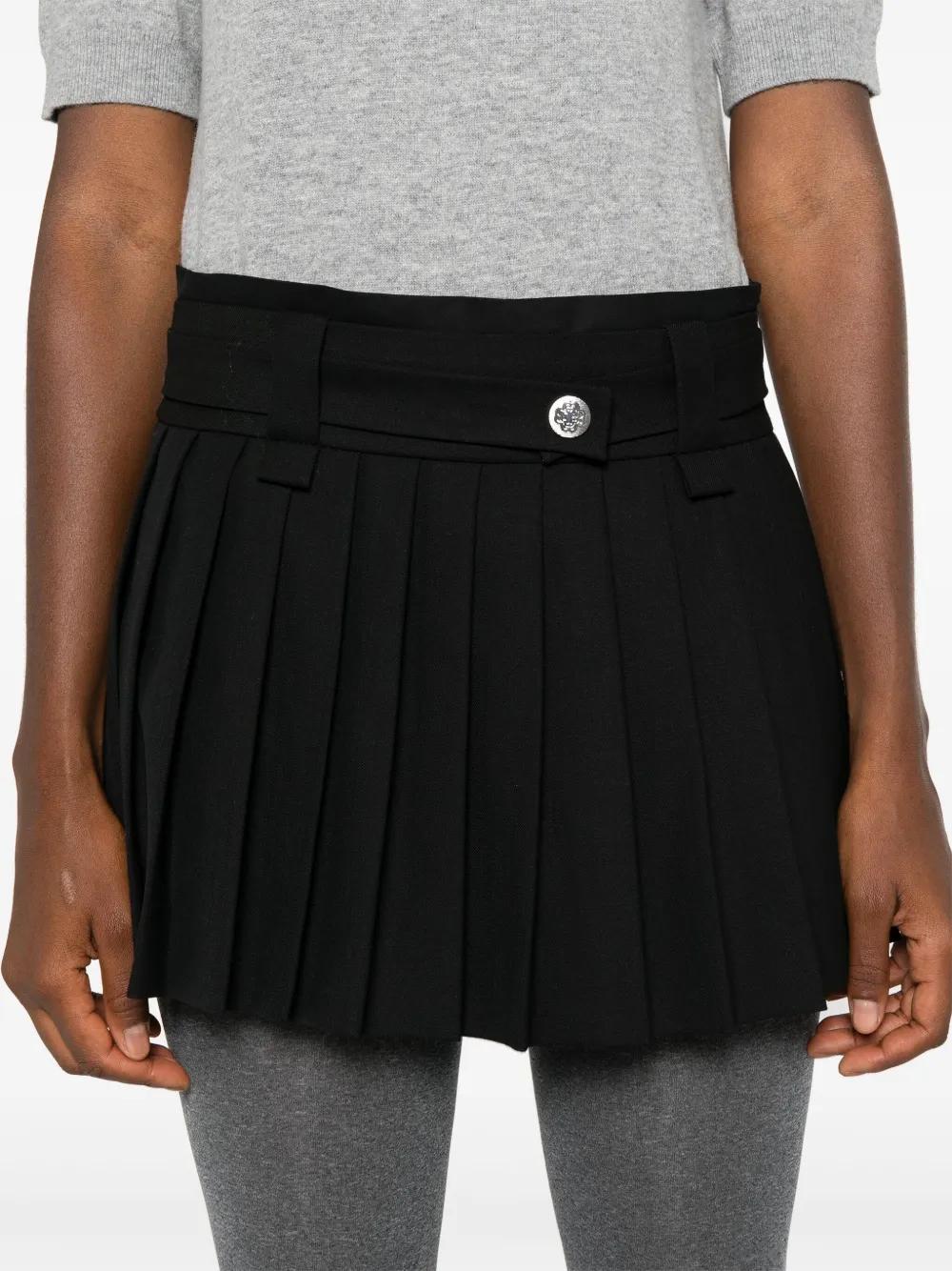 black twill weave concealed side zip fastening belt loops detachable waist belt pleat detailing full lining thigh-length