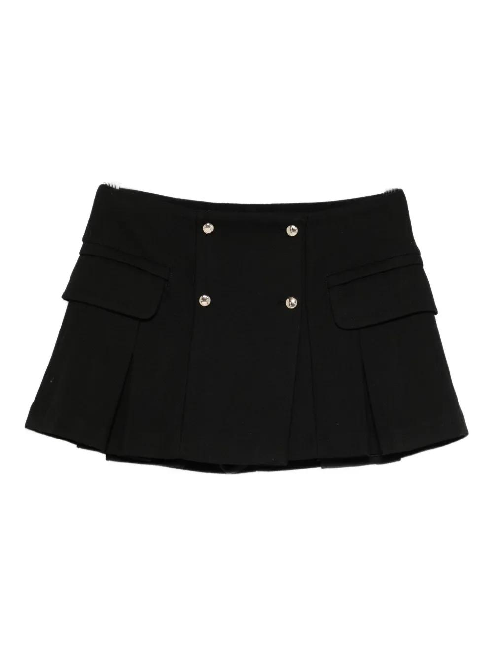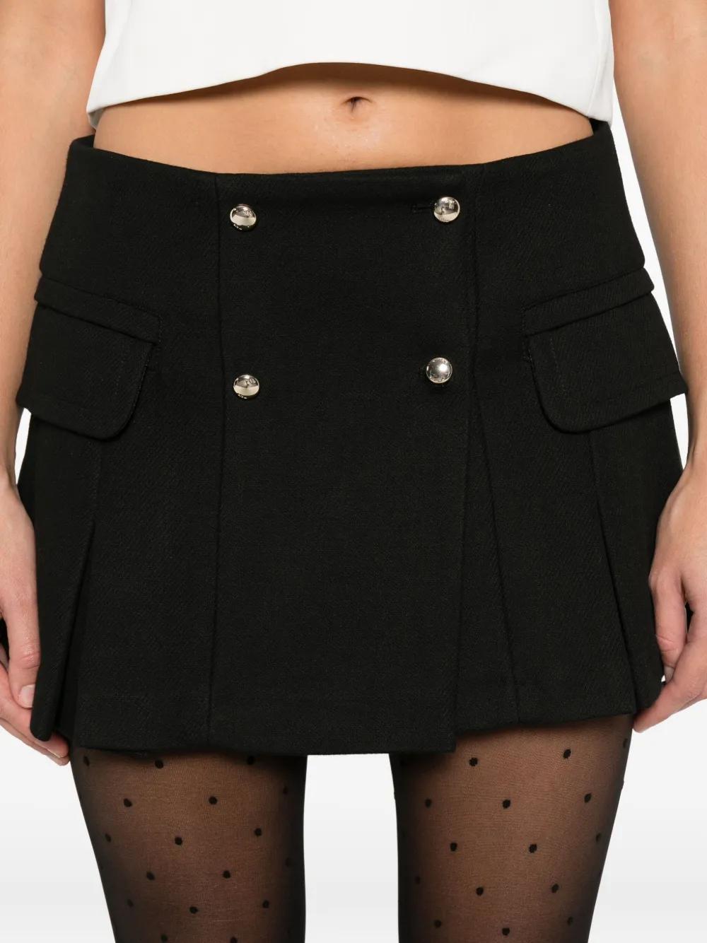 black front flap pockets button embellishment pleated A-line shape mini length