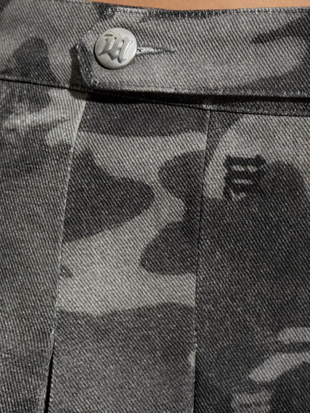 grey camouflage print pleated design button fastening high waist A-line shape