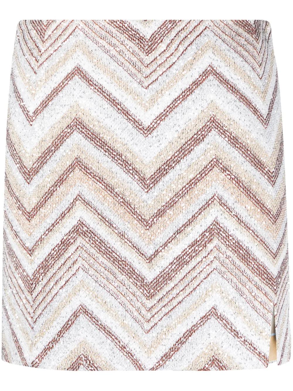 Missoni sequin-embellished zigzag-woven miniskirt - White