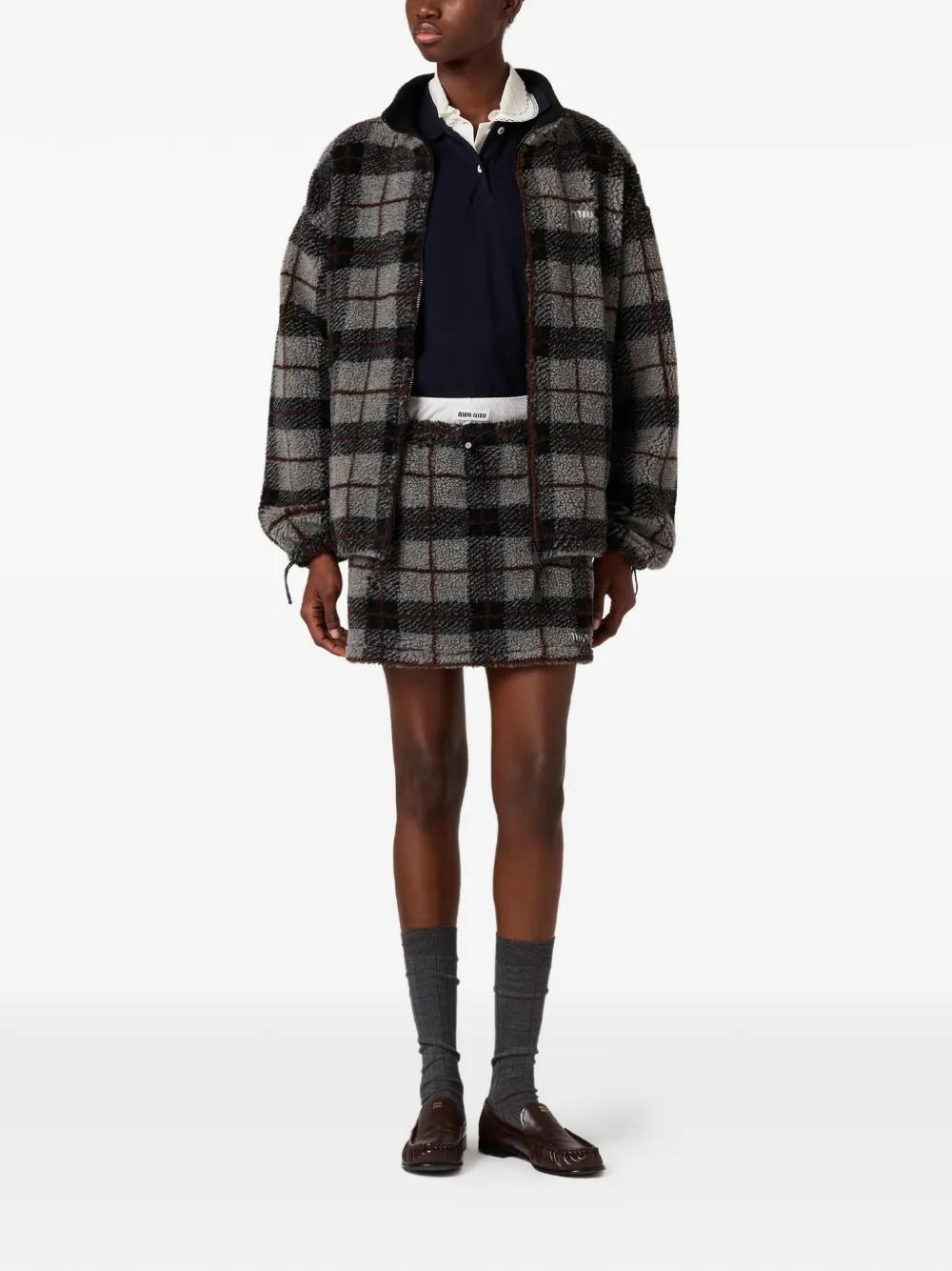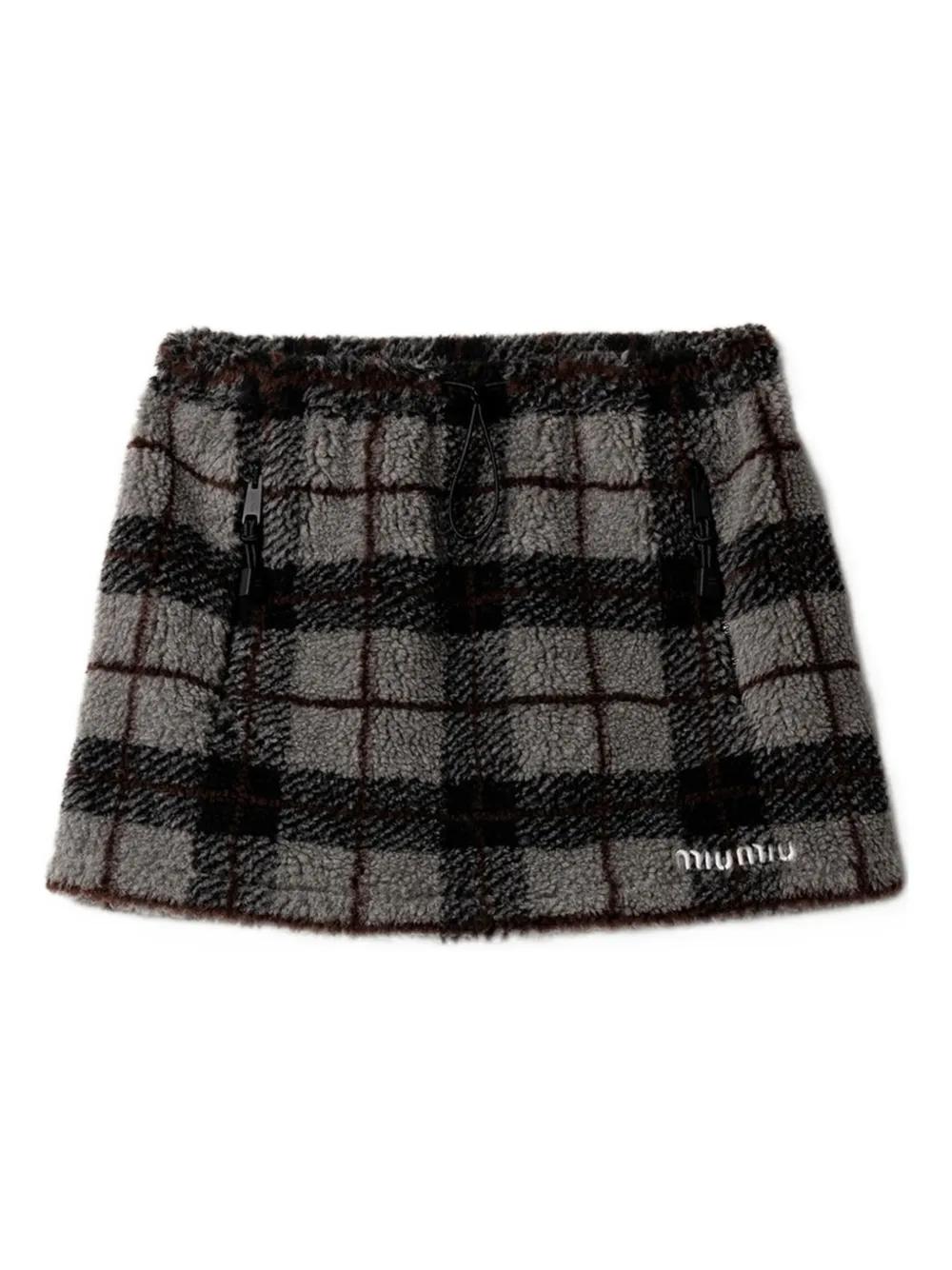 Miu Miu checked-pattern toggle mini skirt - Grey