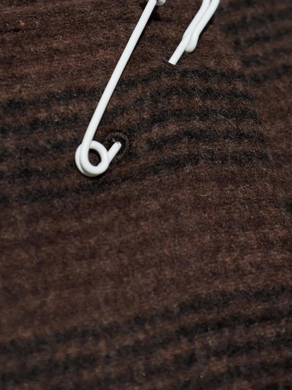 brown asymmetric hem contrasting stripes decorative safety pin detail logo patch