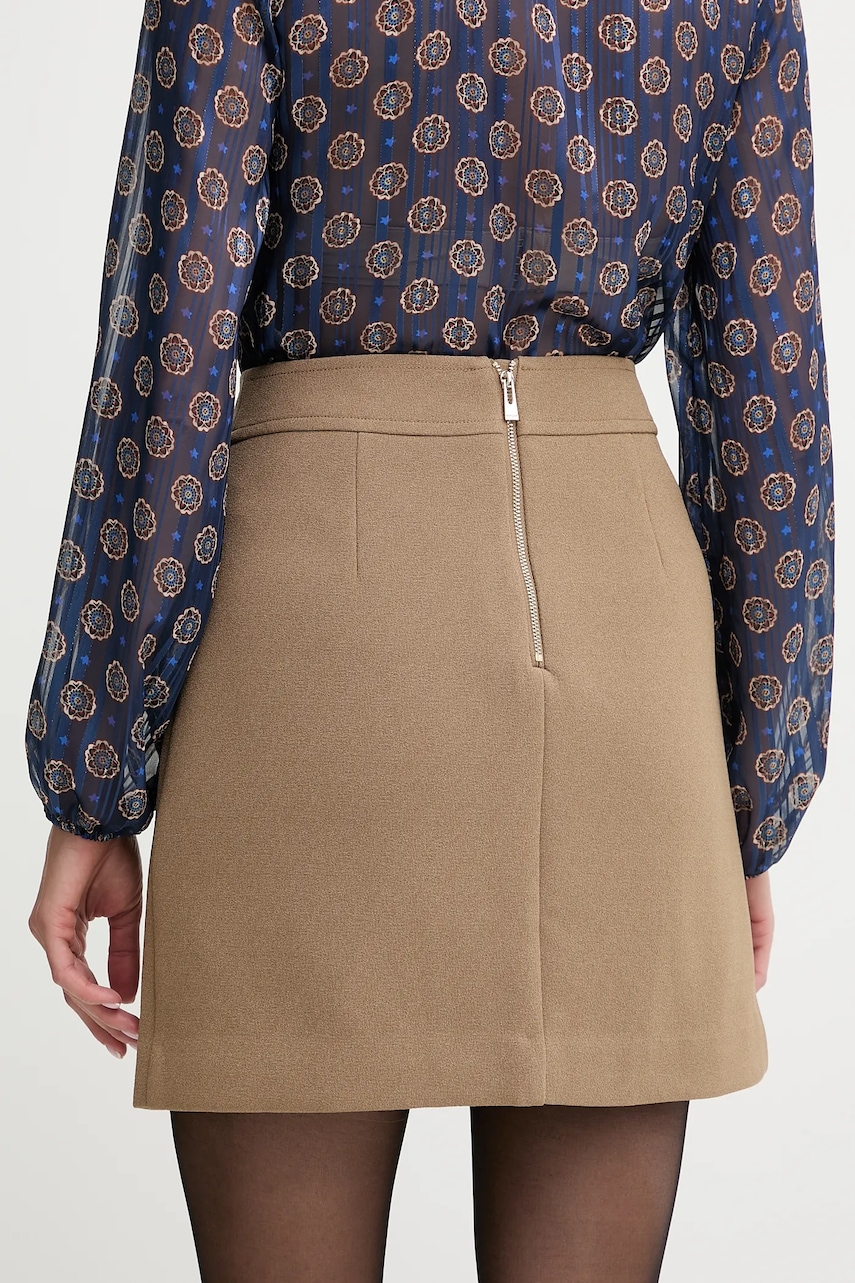 - Ten produkt został częściowo uszyty z poliestru pochodzącego z recyklingu. - Rozkloszowany fason. - Model na podszewce. - Z tyłu zapięcie na suwak. - Cienka, nieelastyczna tkanina. - Szerokość w pasie: 36 cm. - Długość: 43 cm. - Wymiary podane dla rozmiaru: 36.