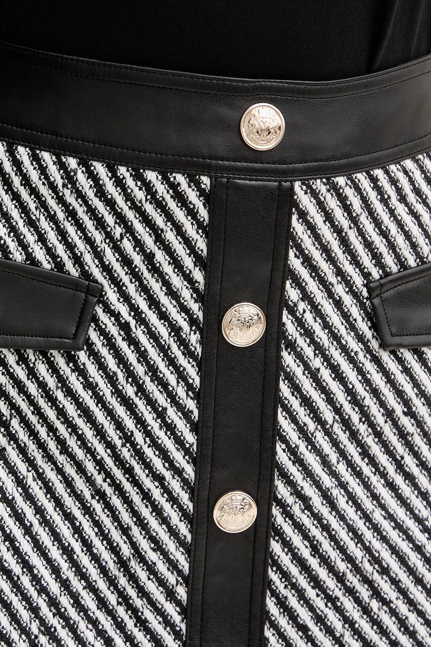 - Model o długości mini. - Prosty fason. - Dodatkowa warstwa materiału w postaci podszewki. - Model z ozdobnymi guzikami. - Szerokość w pasie: 37 cm. - Długość: 44 cm. - Wymiary podane dla rozmiaru: 36.