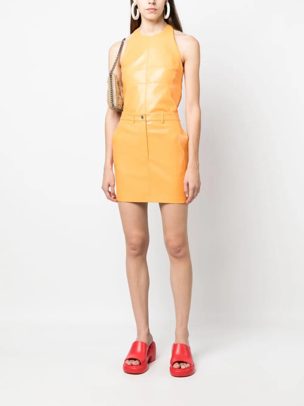 orange recycled polyester belt loops button fly fastening two side slit pockets thigh-length two rear patch pockets