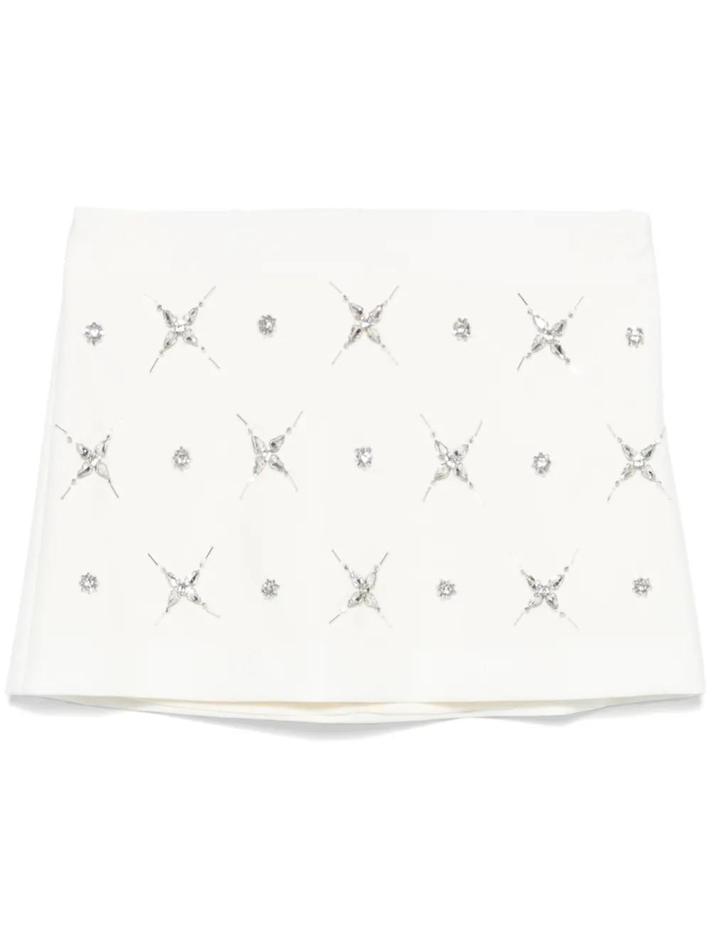 white twill weave crystal embellishment rear zip fastening full lining straight hem thigh-length