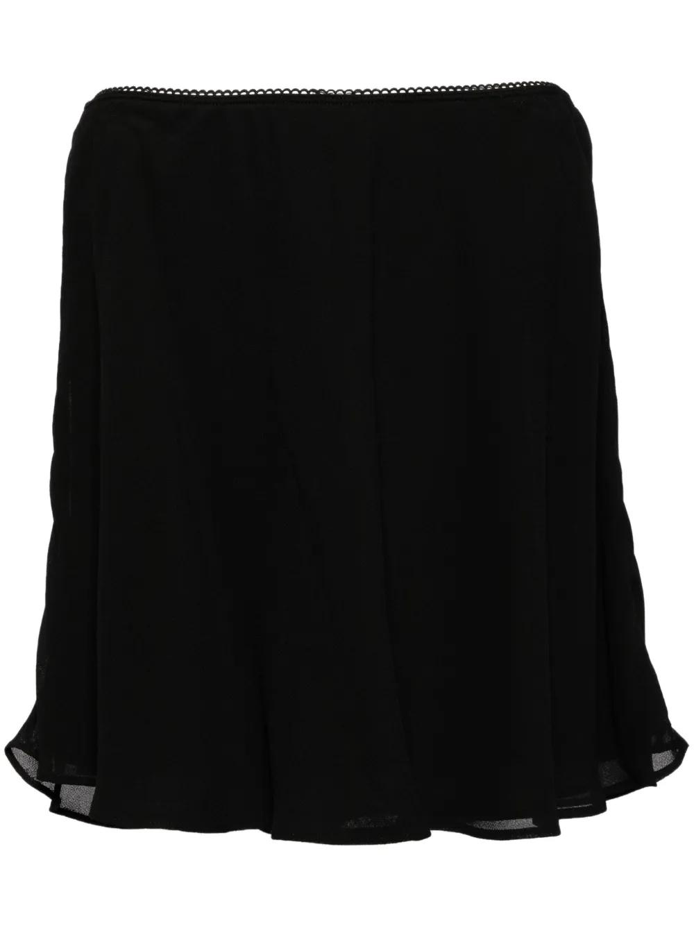 black high-waisted bow detailing elasticated waistband scallop edge thigh-length flared hem