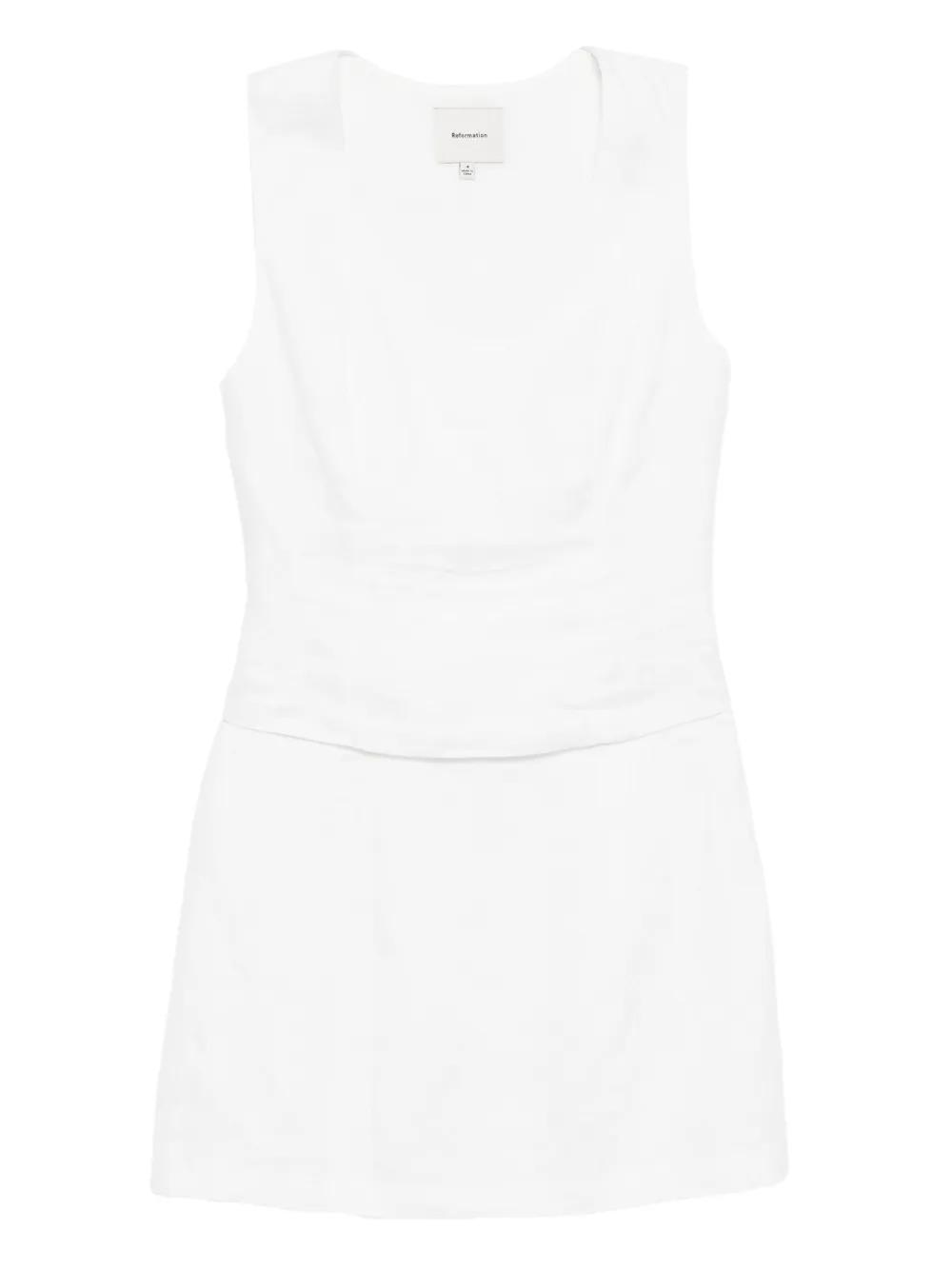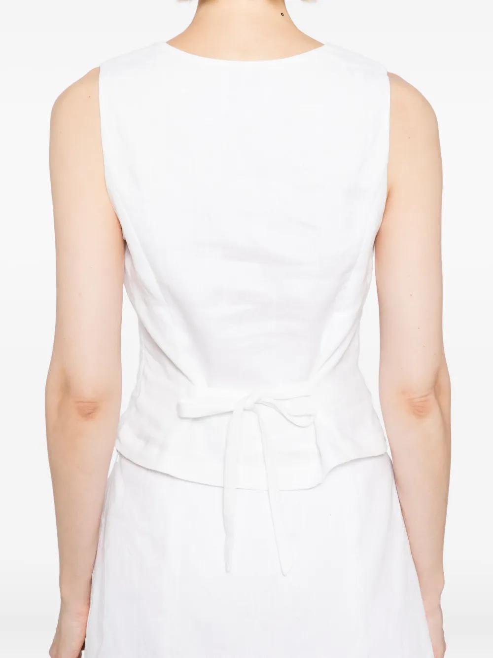 Top white rear tie fastening sleeveless scoop neck Bottom white side zip fastening straight hem