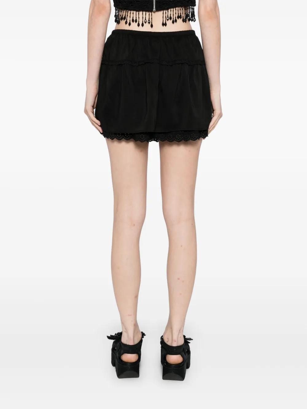 dark grey layered design lace trim pleated detail raw hem belt loops