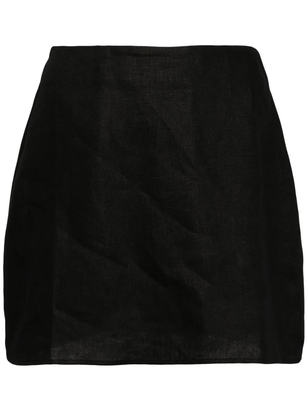 black linen/flax high-waisted concealed rear zip fastening thigh-length straight hem