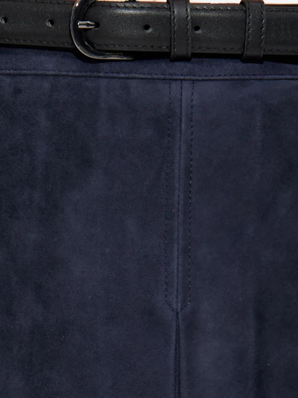 navy blue leather pleated A-line