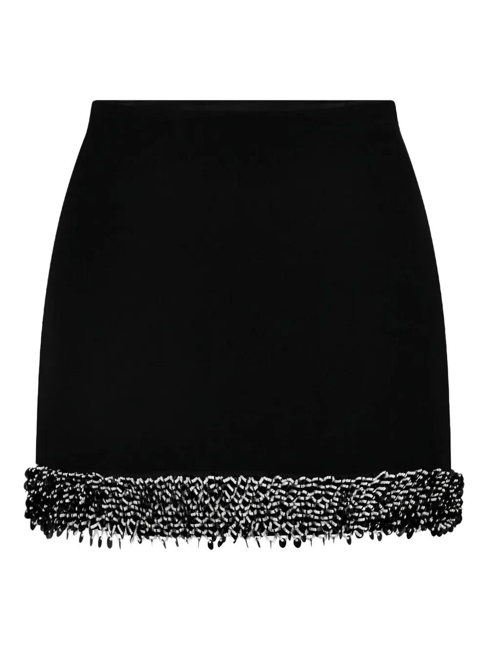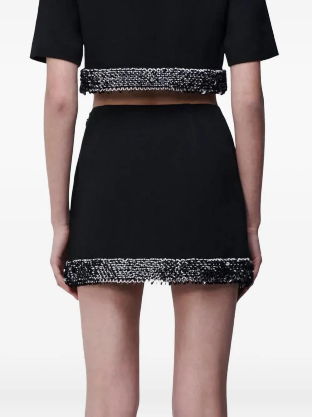 - Rozkloszowany fason. - Asymetryczna dolna krawędź. - Model z ozdobnymi falbanami. - Model na podszewce. - Zapięcie na kryty suwak.