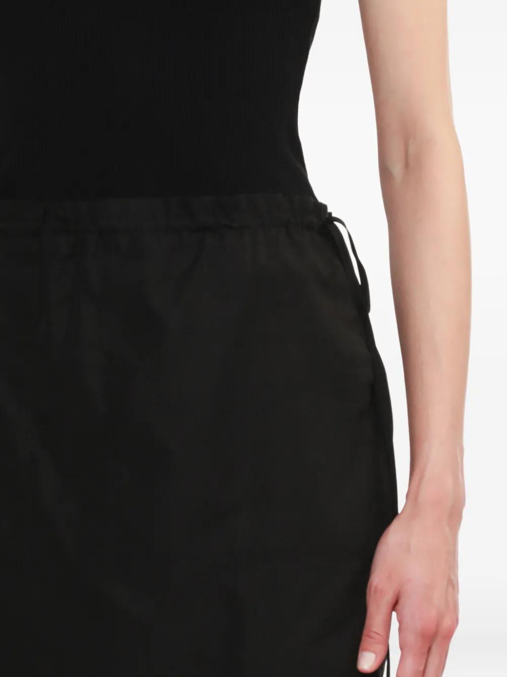 dark grey layered design lace trim pleated detail raw hem belt loops
