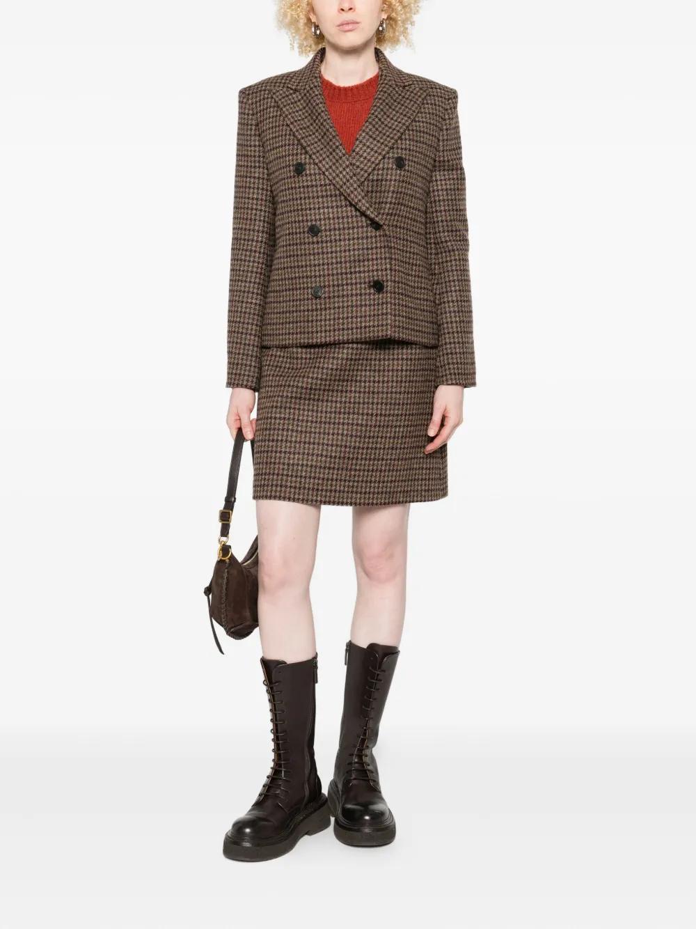 camel brown elasticated drawstring waistband two side slit pockets straight hem thigh-length