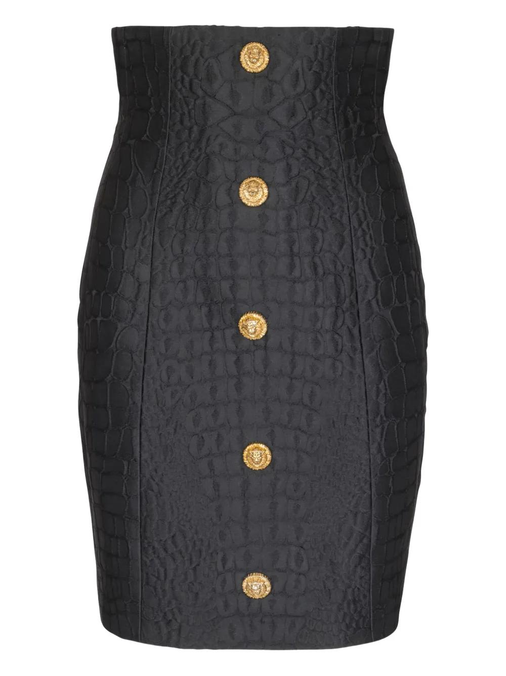 Balmain crocodile-effect button mini skirt - Black