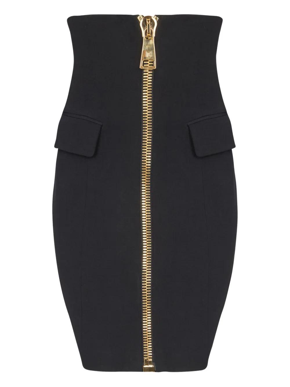 black gold-zip fastening fitted waist two-welt pockets pencil shape Grain de Poudre wool fabric
