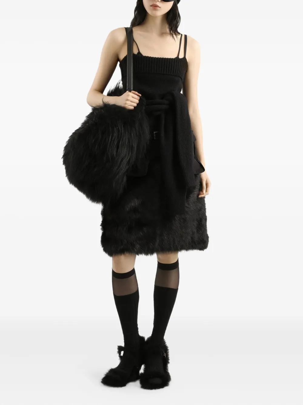 black faux-fur panelling belted waist flap pockets zip fly straight hem