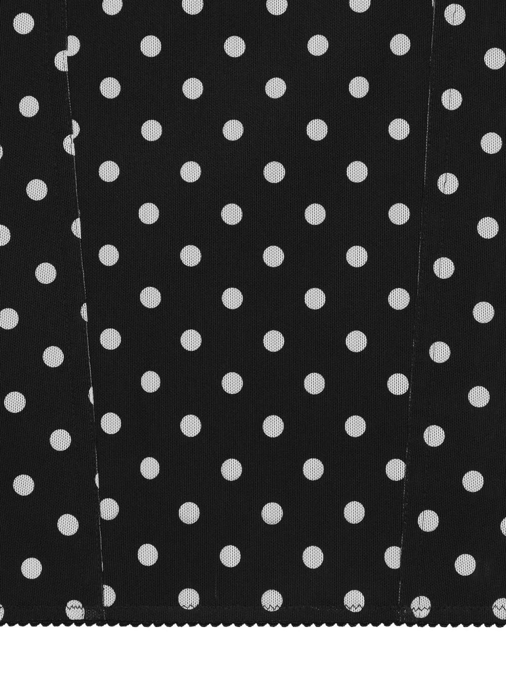 black/white polka dot print elasticated waistband pencil silhouette mid-length lettuce hem