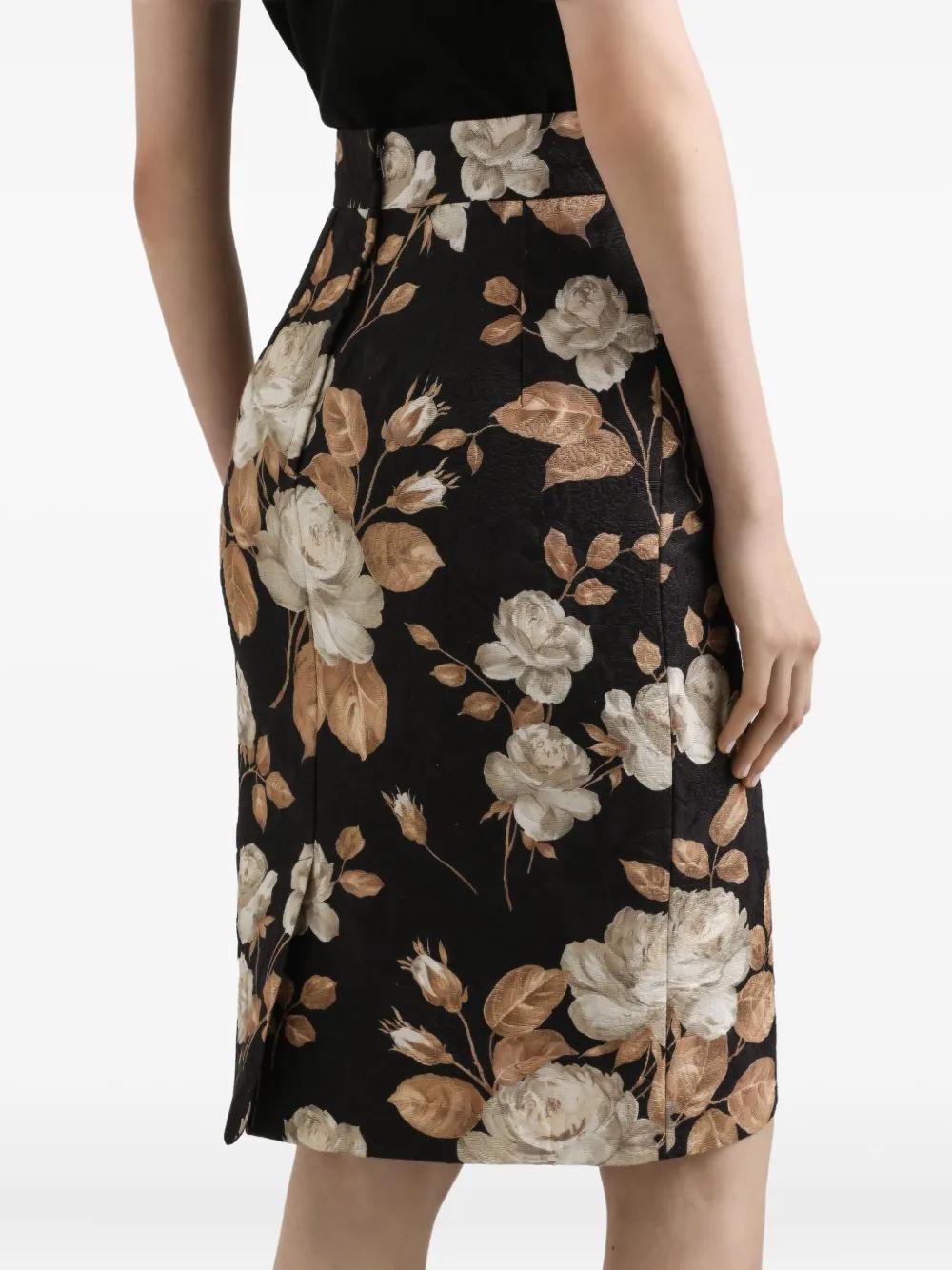 Dolce & Gabbana rose-print midi pencil skirt - Black