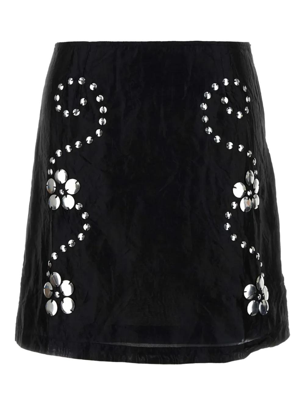 black faux-leather design A-line silhouette seamed panelling zip fastening straight hem