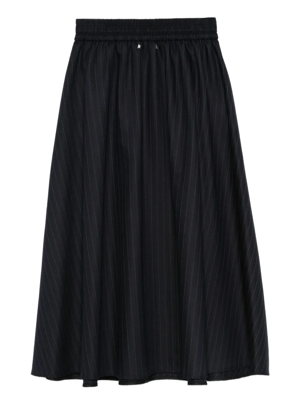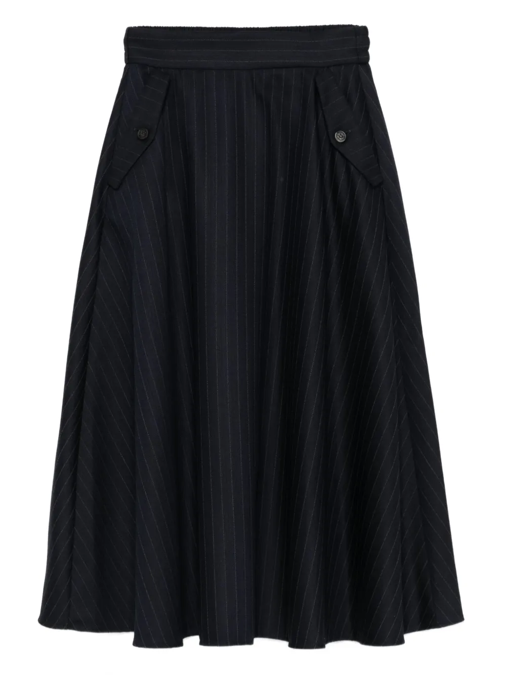 blue pinstripe pattern A-line shape logo-plaque embellishment