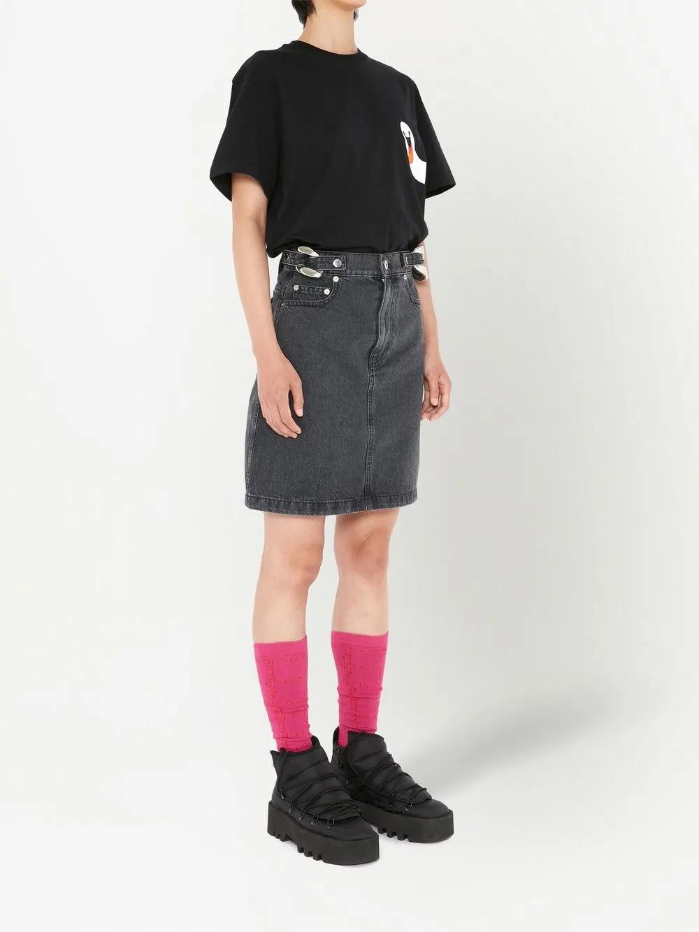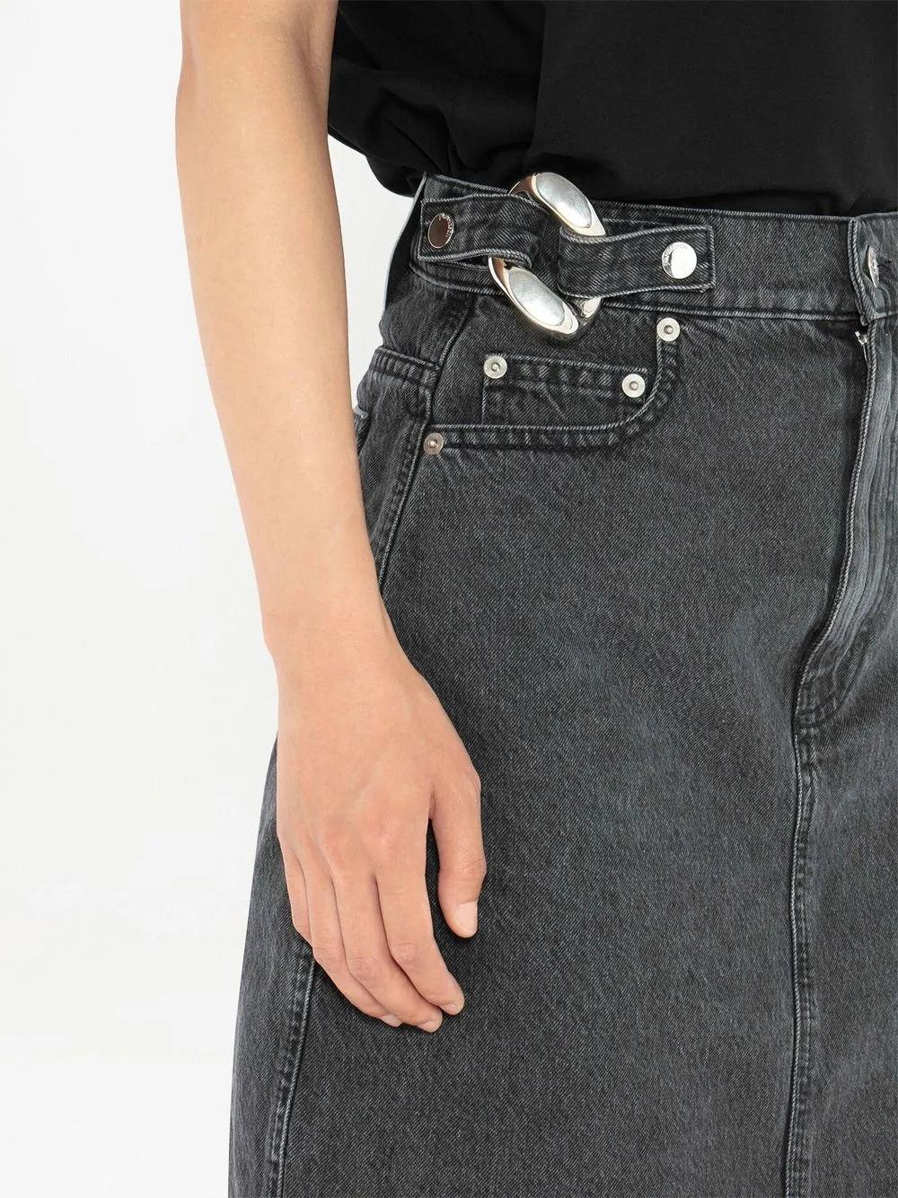 charcoal grey cotton detachable chain-link detailing logo patch to the rear front button fastening classic five pockets