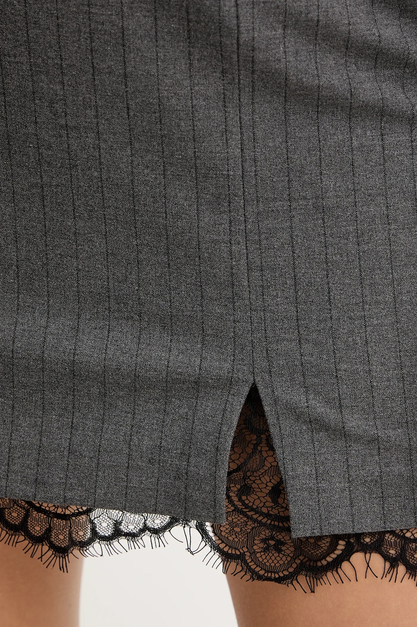 - Poliester użyty do wykonania tego modelu jest przynajmniej w połowie poliestrem pochodzącym z recyklingu. - Dopasowany, podkreślający sylwetkę fason. - Dodatkowa warstwa materiału w postaci podszewki. - Model z regularną talią i zapięciem na suwak. - Efektowne rozcięcie. - Model z koronkowymi wstawkami. - Szerokość w pasie: 35 cm. - Długość: 48 cm. - Wymiary podane dla rozmiaru: 36.