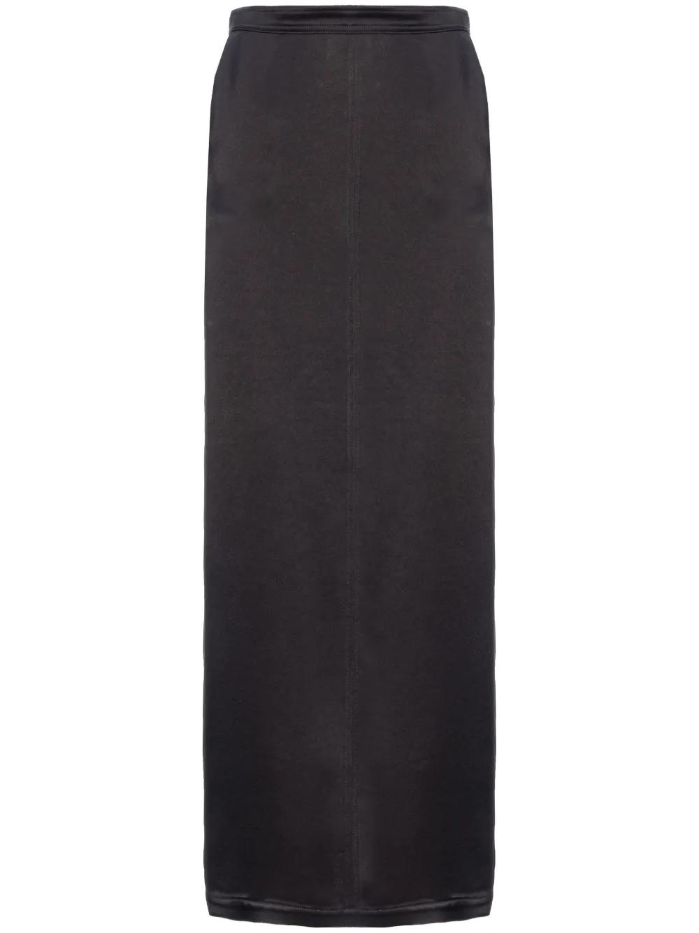 black pencil silhouette rear slit straight hem concealed rear zip fastening full-length