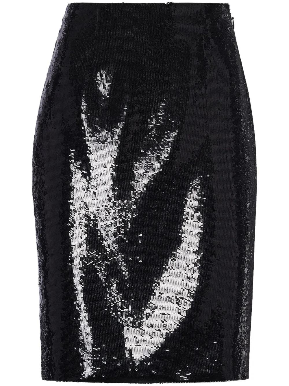 black silk sequin embellishment high-waisted concealed side zip fastening