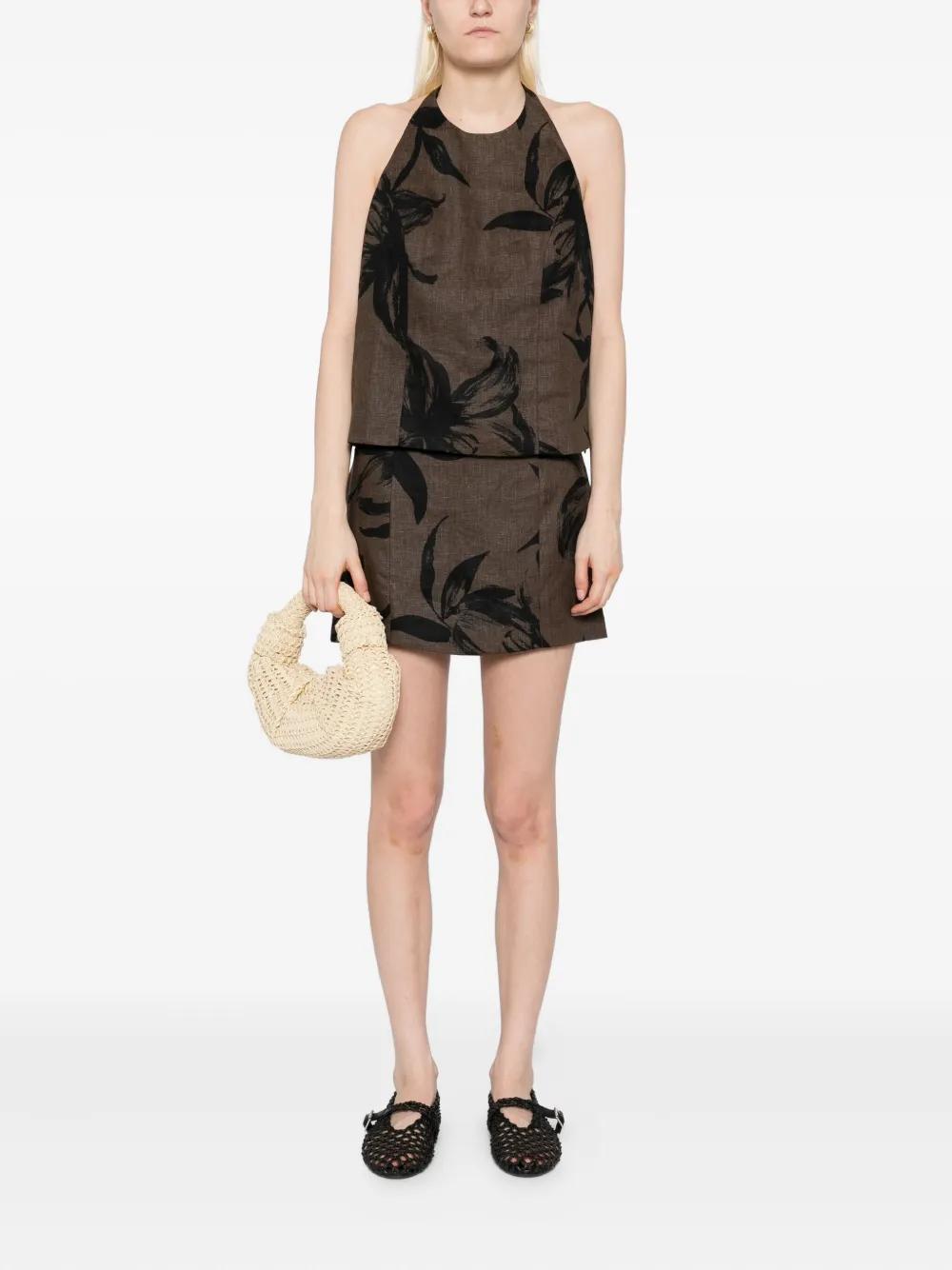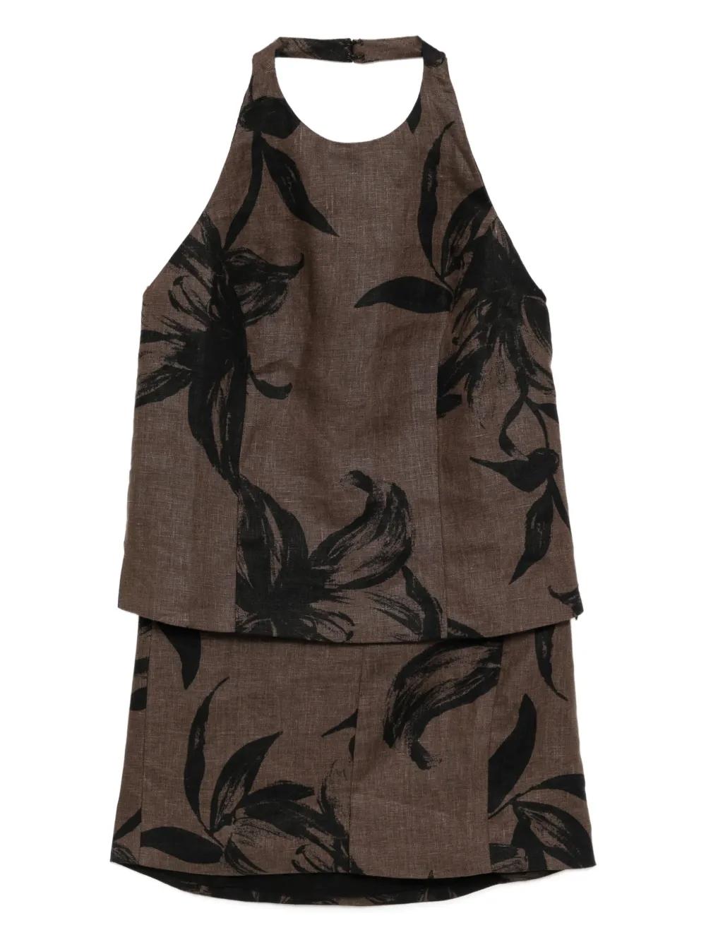 Top cedar brown rear hook fastening sleeveless halterneck Bottom cedar brown side zip fastening straight hem