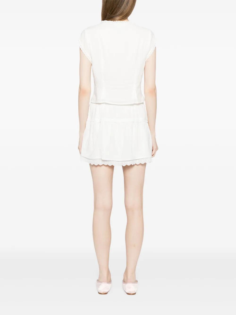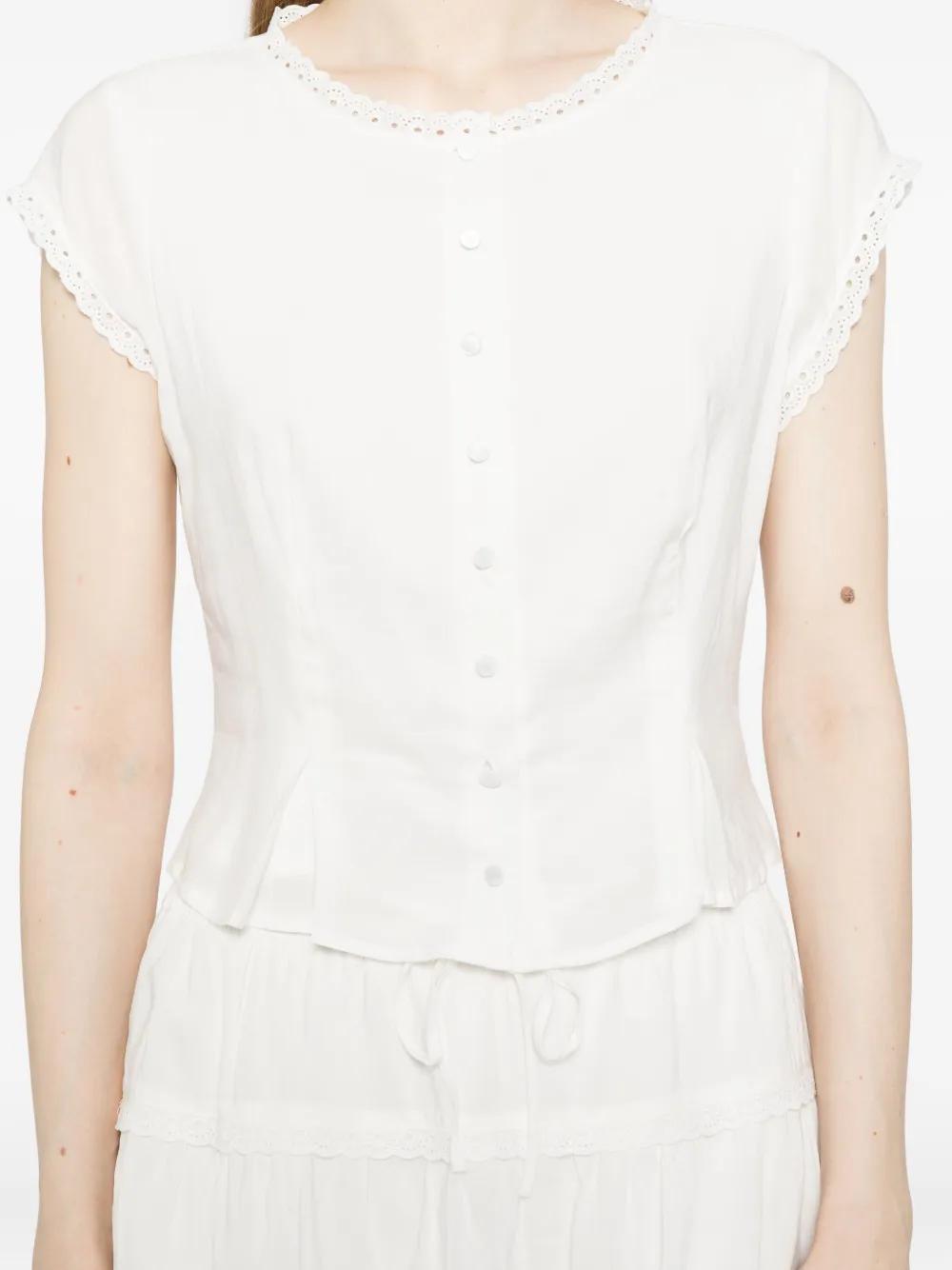 white Top front button fastening lace cuffs bottom elasticated drawstring waistband straight hem