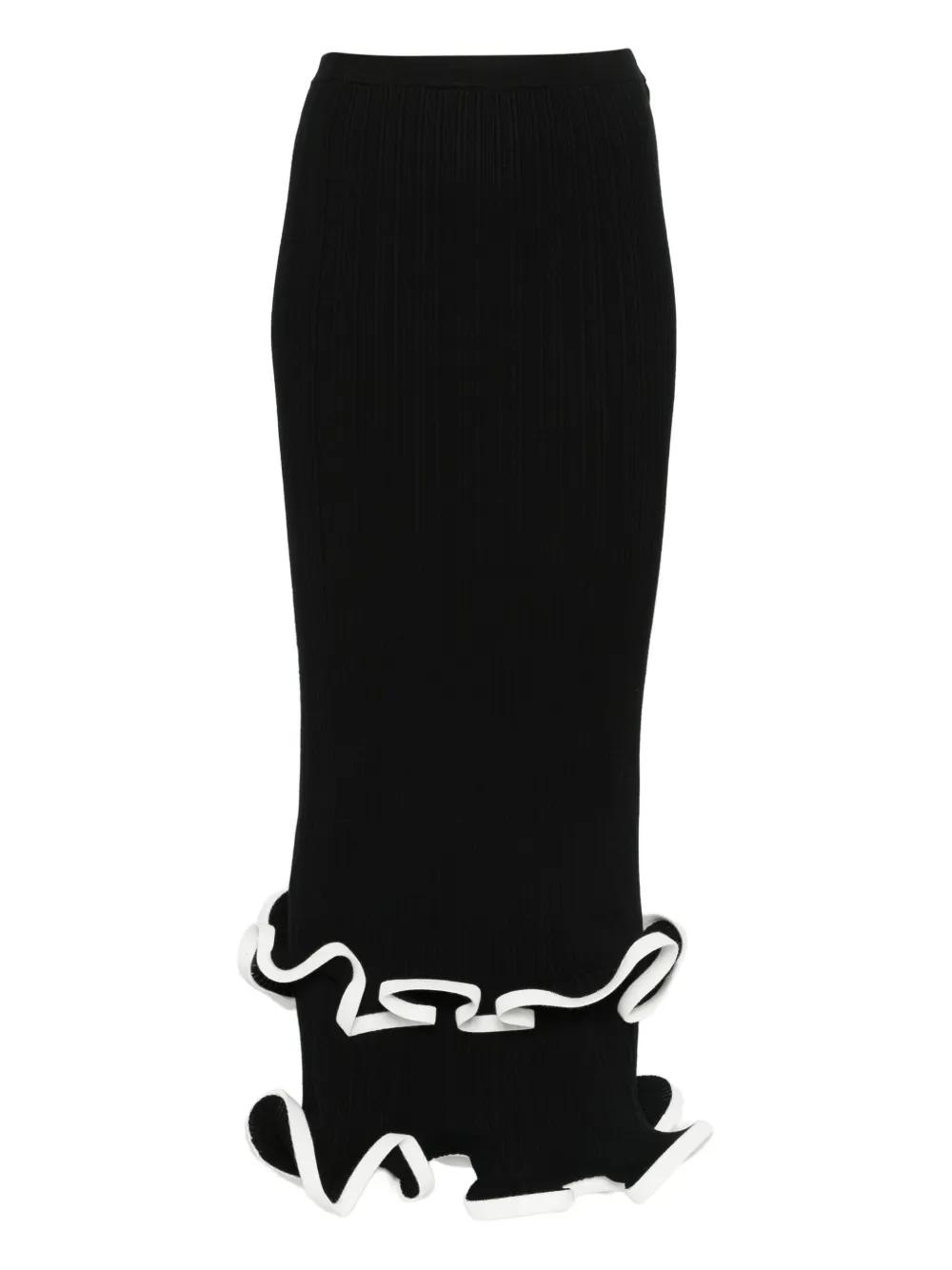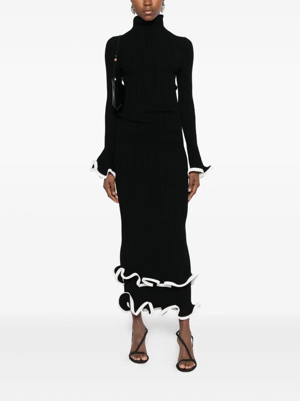 black ribbed knit ruffled hem mid length contrasting trim