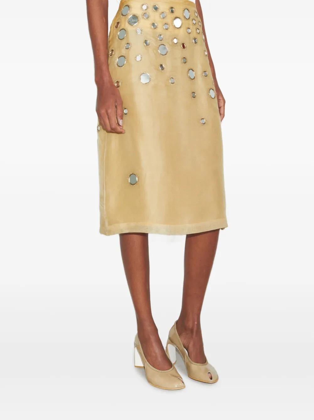 light beige embellished mirror circles high waist smooth finish invisible side zip fastening