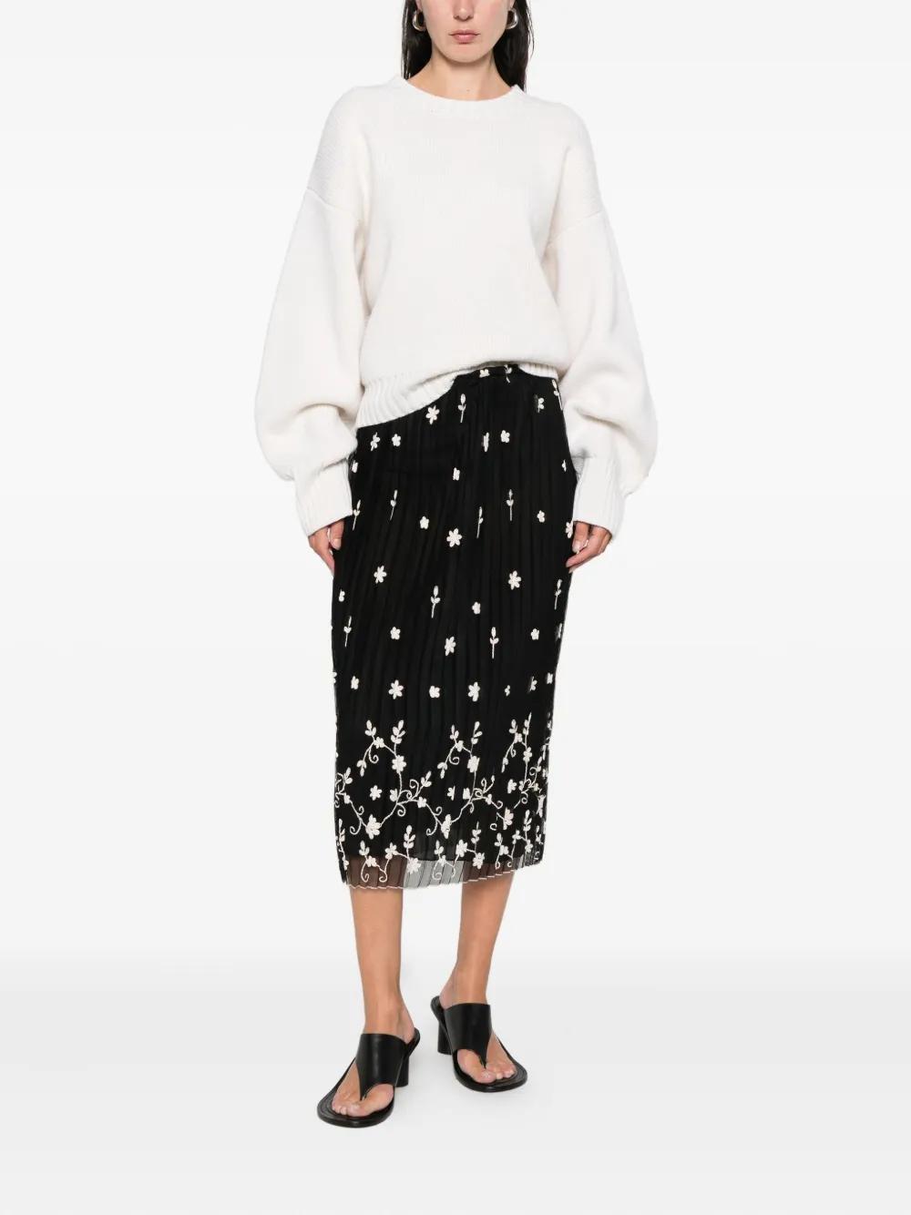 black organic cotton crochet knit fitted waistline high-waisted above-knee length rear zip fastening straight hem