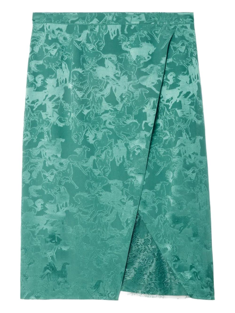 Zadig&Voltaire Julen horse-jacquard lace-insert midi skirt - Green