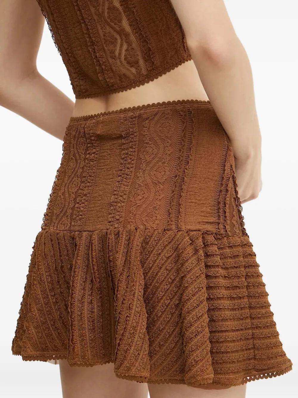 Charo Ruiz Ibiza lace-trimmed ruffled mini skirt - Brown