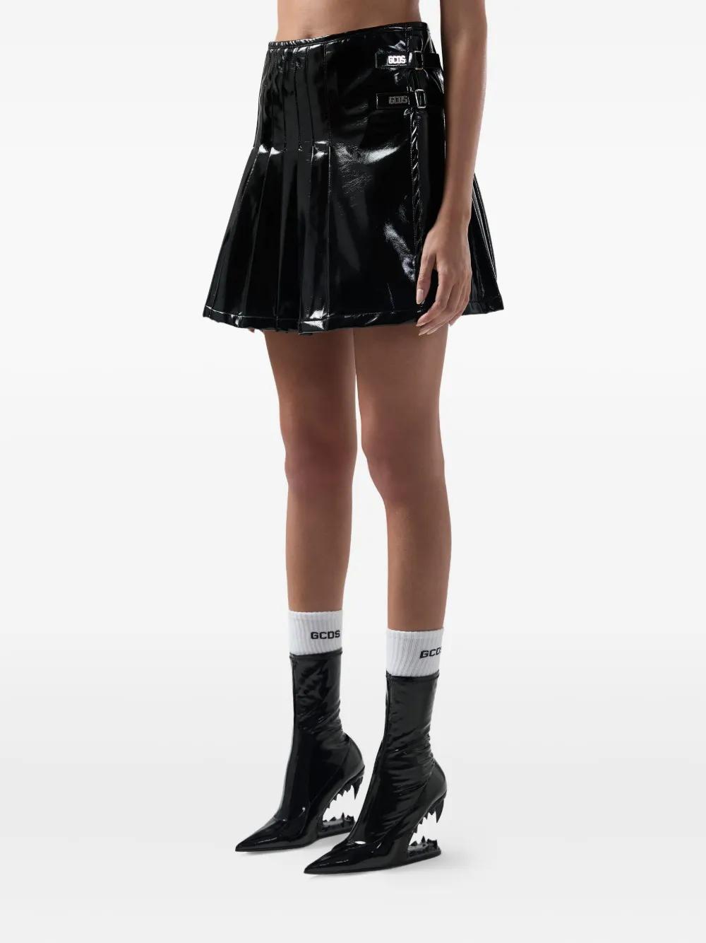 blue iris precision pleats zip detail wide waistband logo detail structured silhouette