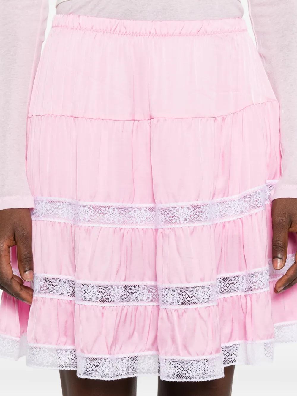 pink tiered design lace trim A-line shape elasticated waistband