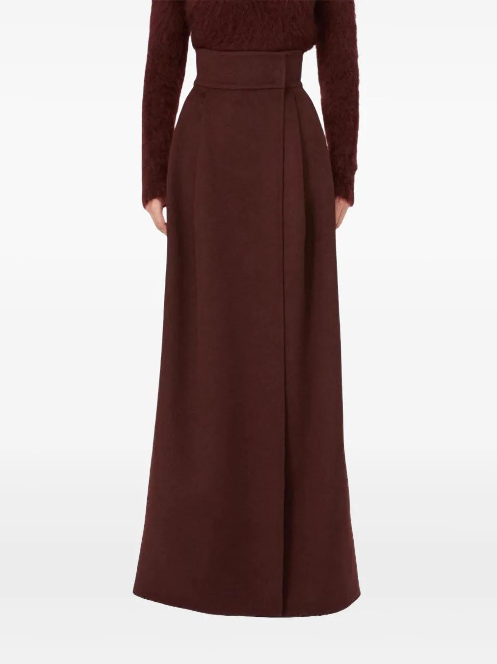 red pleated detailing wrap-around style high waist A-line shape camel wool
