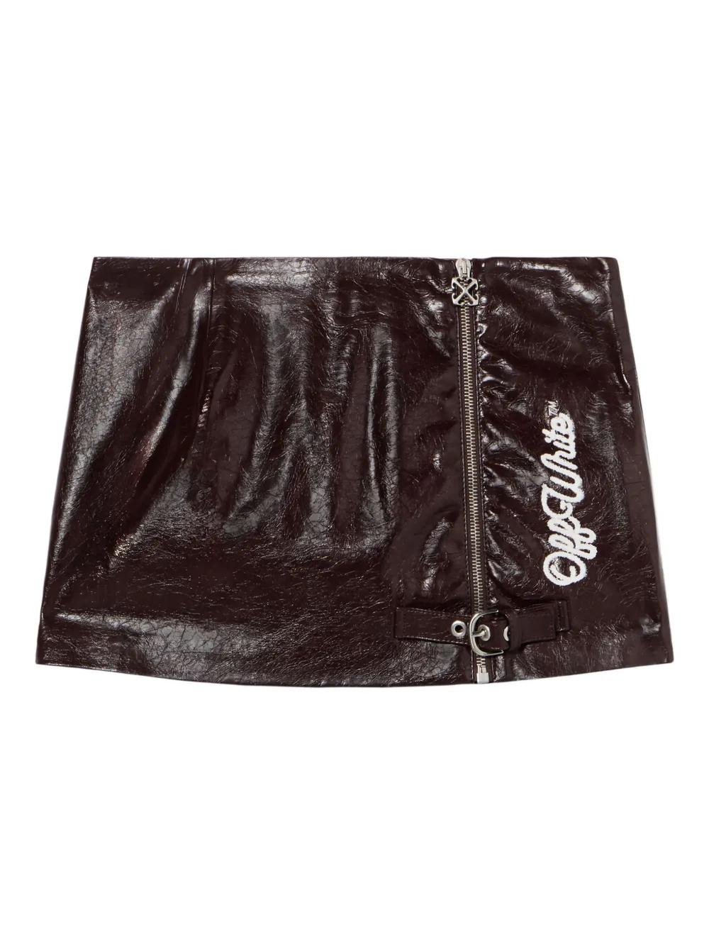 chocolate plum crinkle coated texture logo embroidery exposed zip fastening side buckle rear panel