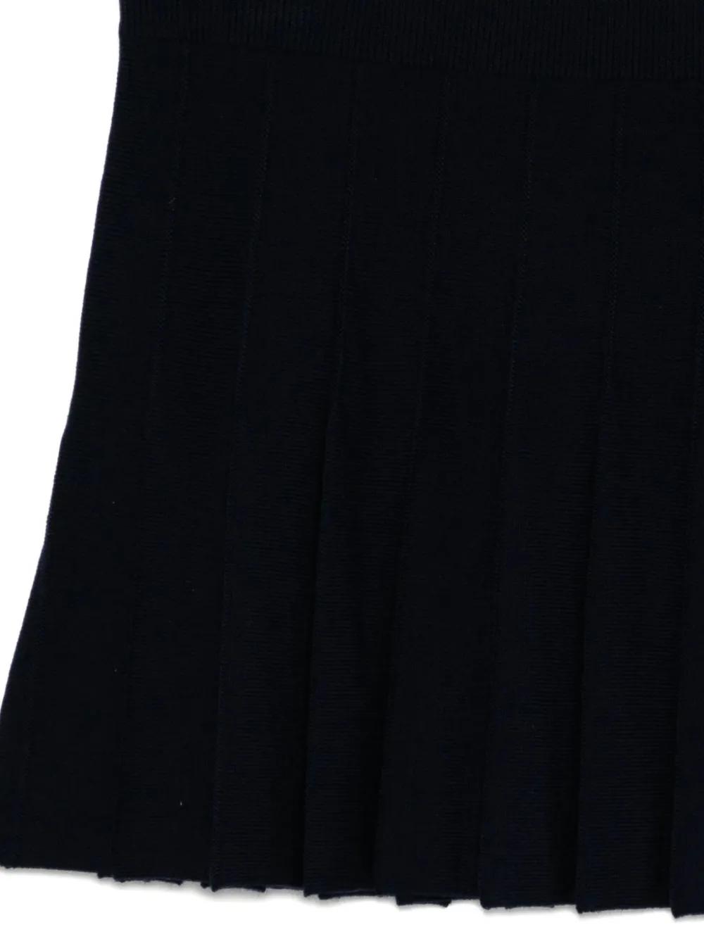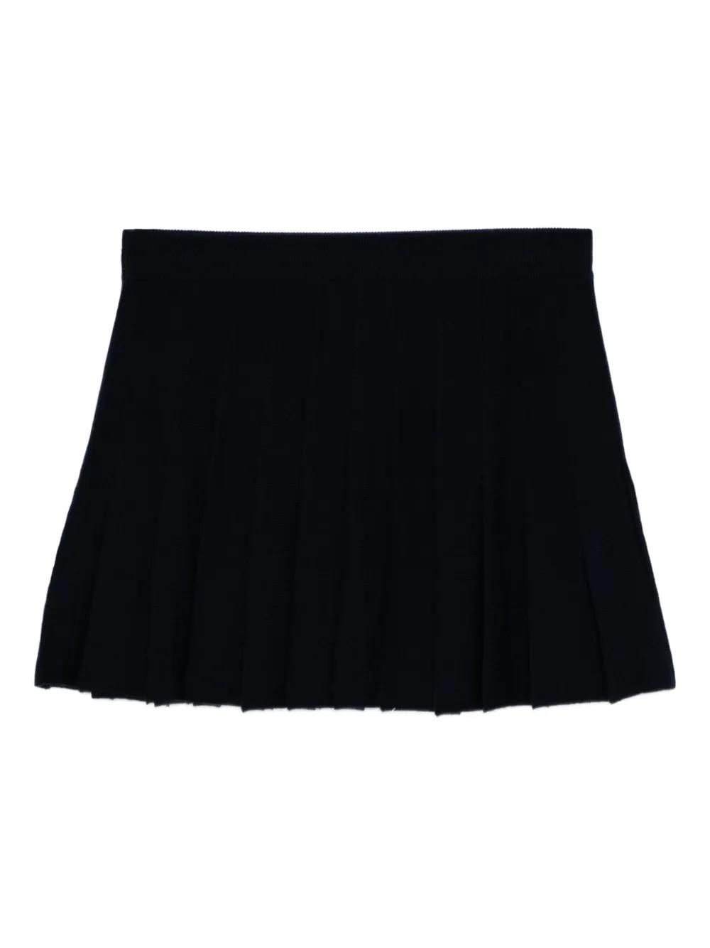 blue iris precision pleats zip detail wide waistband logo detail structured silhouette
