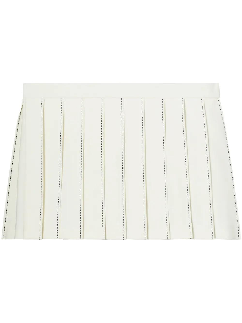 Black wool pleated wrap mini skirt from Alexander McQueen featuring a concealed button fastening and a calf leather waist belt.