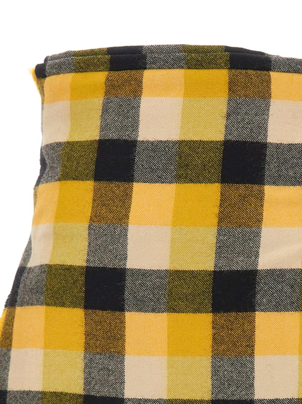 yellow pixel-check pattern pleated construction side wrap closure silver-tone buckles kilt design