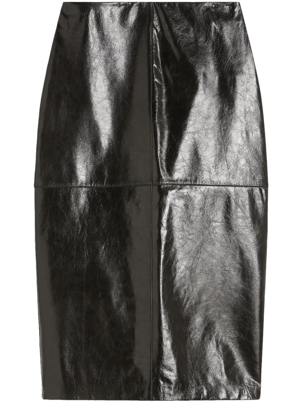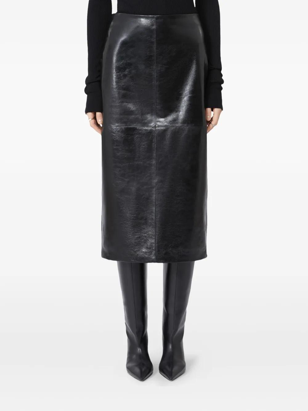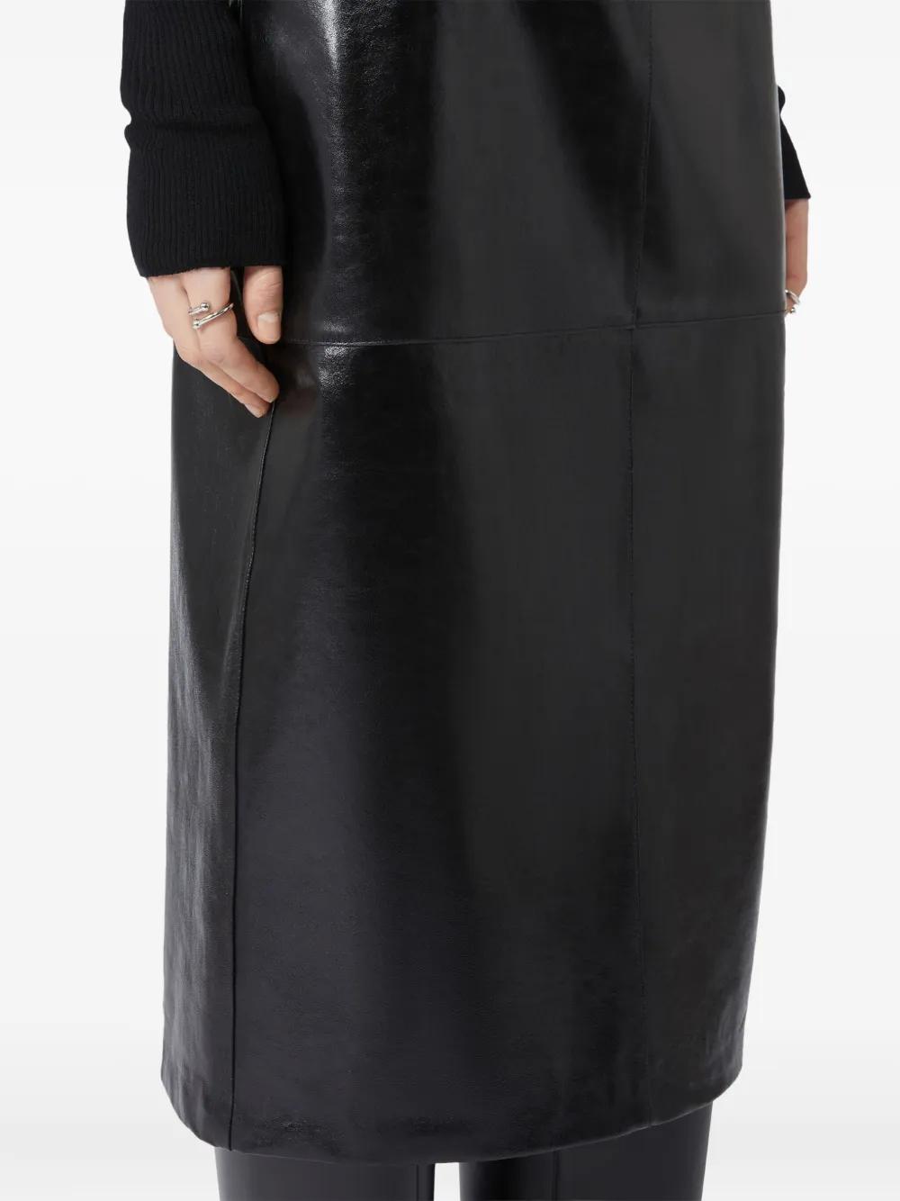 black lambskin smooth grain braid detailing belt loops concealed fly and button fastening two front patch pockets two rear patch pockets thigh-high