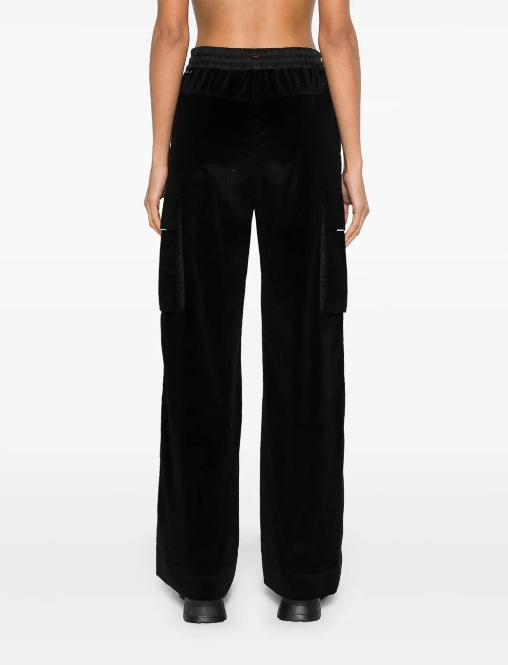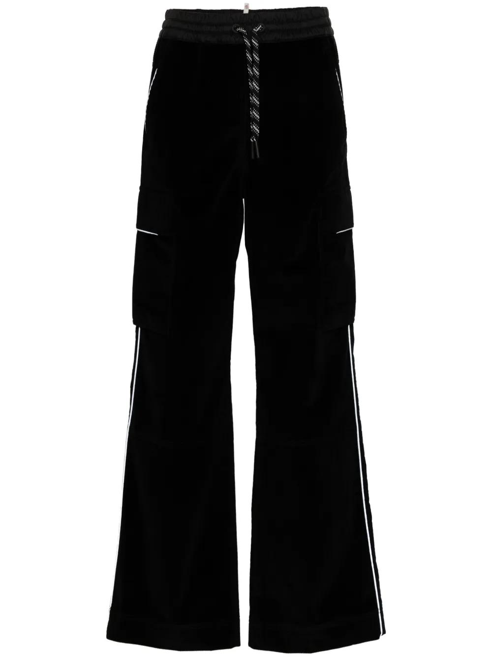 black cotton blend stretch-design corduroy waterproof GORE-TEX® material panels windproof breathable piped-trim detailing elasticated drawstring waistband two diagonal pockets to the sides two side cargo pockets straight leg