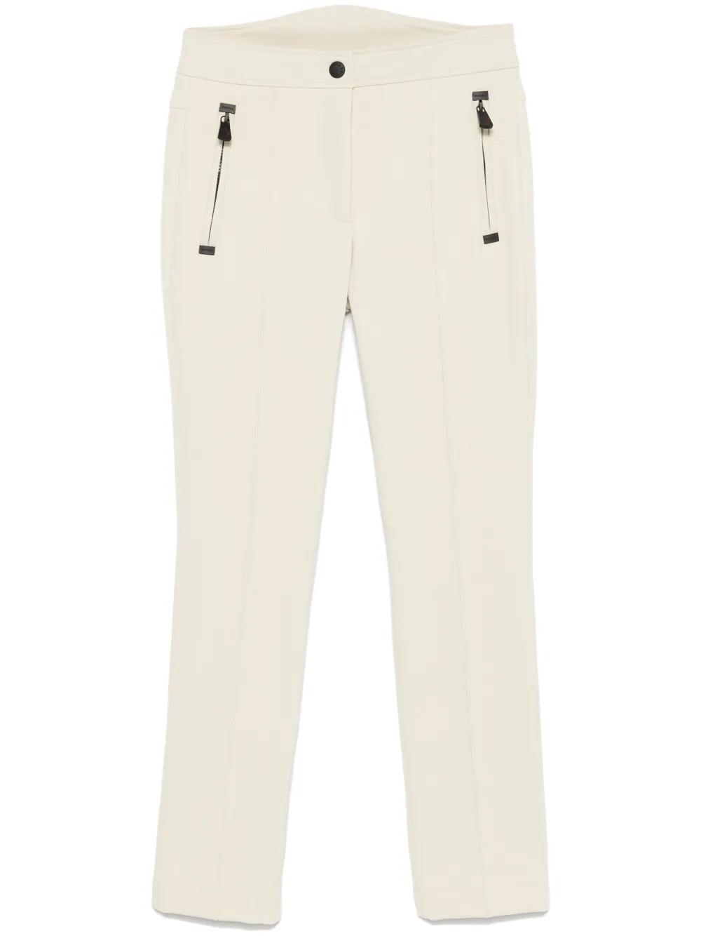 beige/black twill weave front press-stud and zip fastening pressed crease front zip fastening pockets branded zip puller slim cut