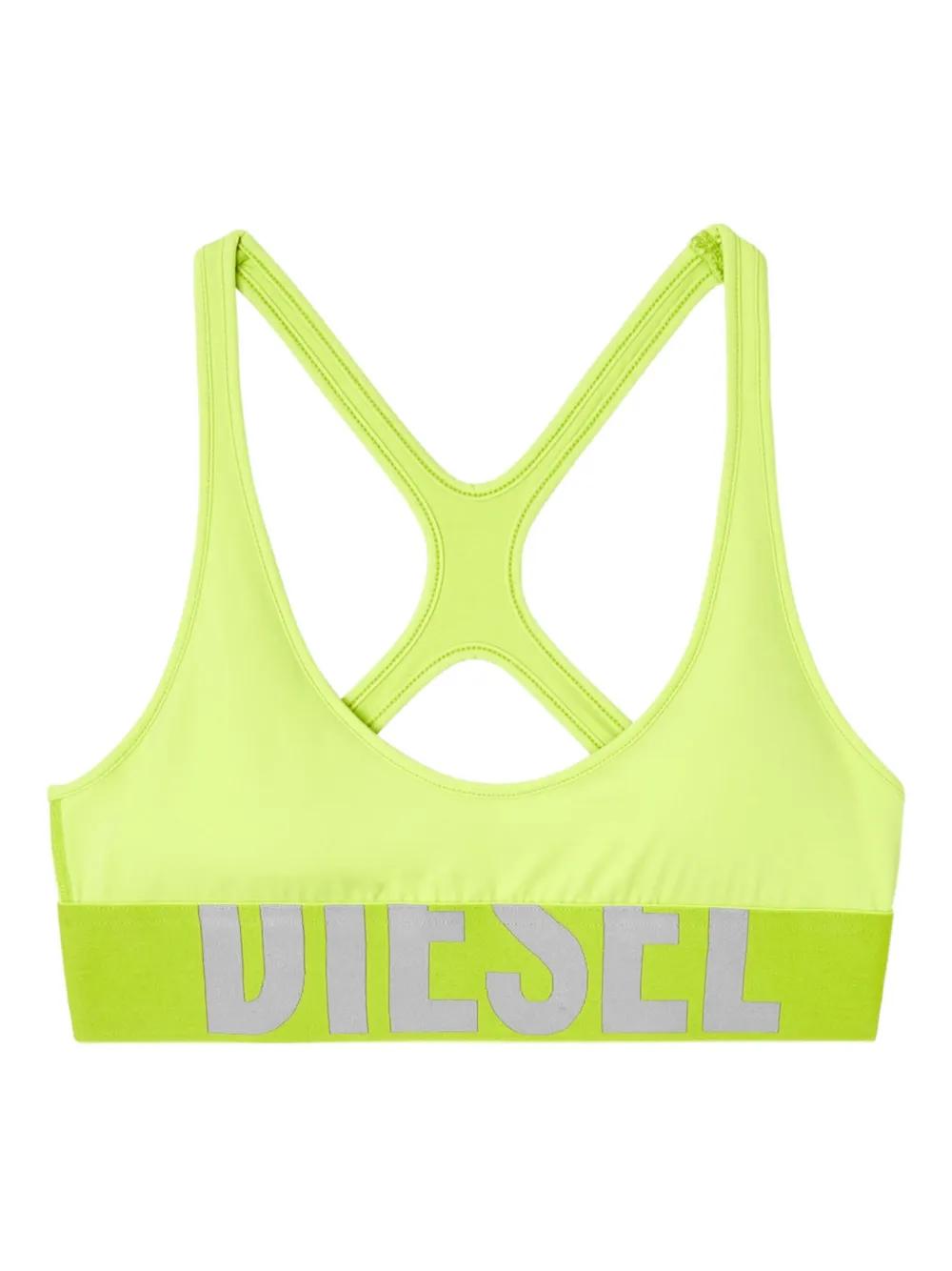 bright yellow logo print sporty design wide elasticated band cross-back straps flexible fit
