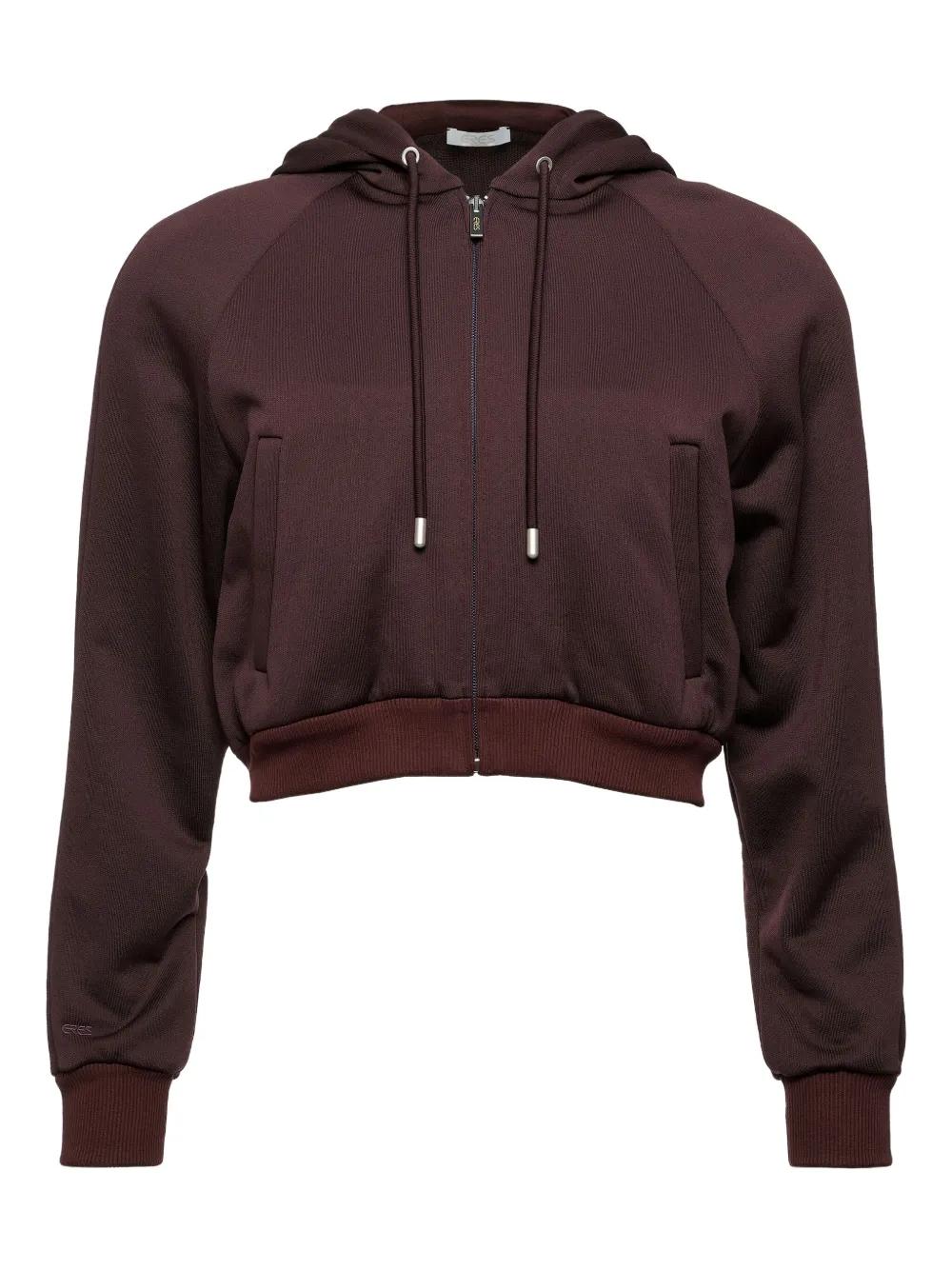 brown cropped length zip fastening fitted cuffs raglan sleeves